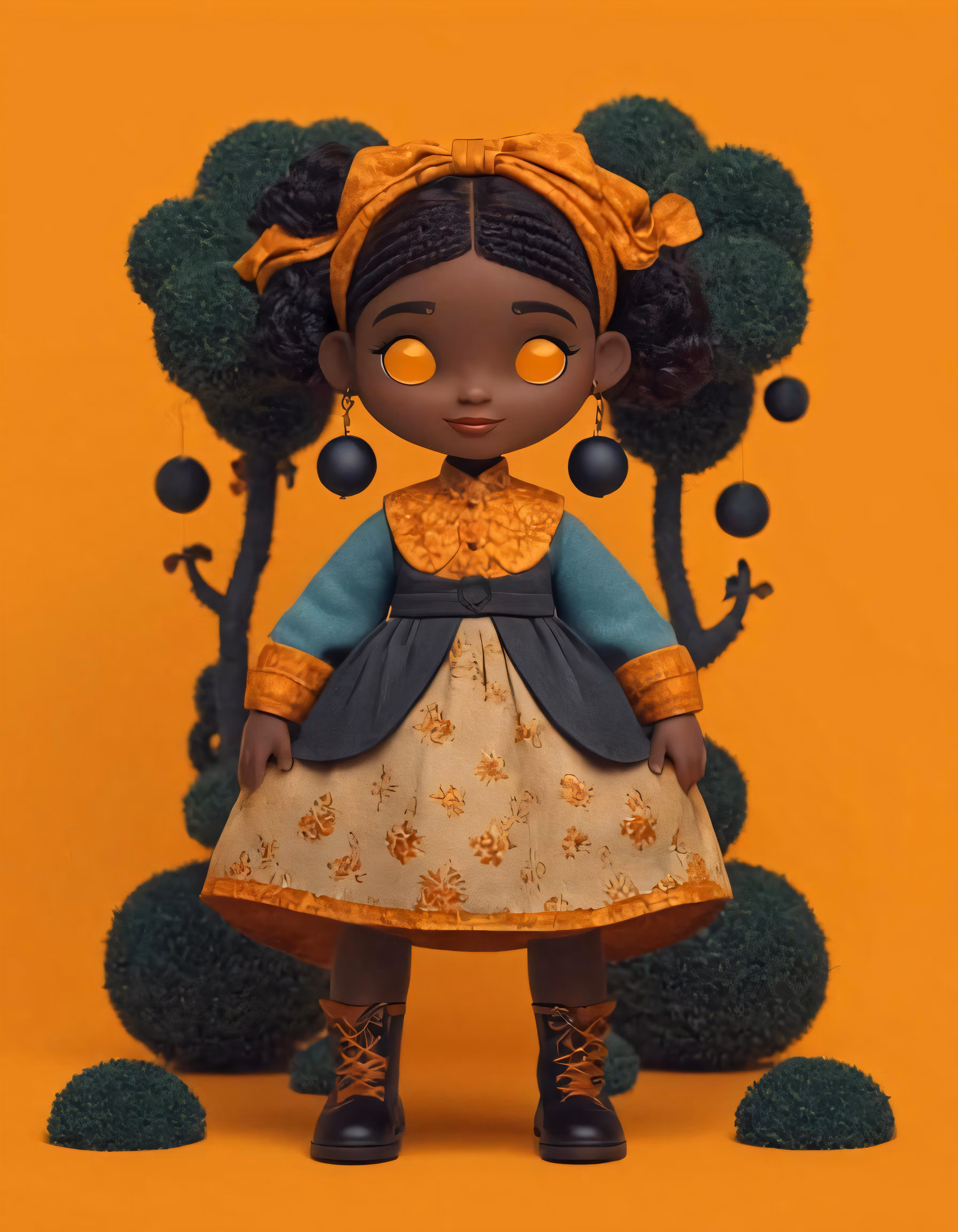 High resolution picture, free to use, the little black girl has a blue dress and brown shoes