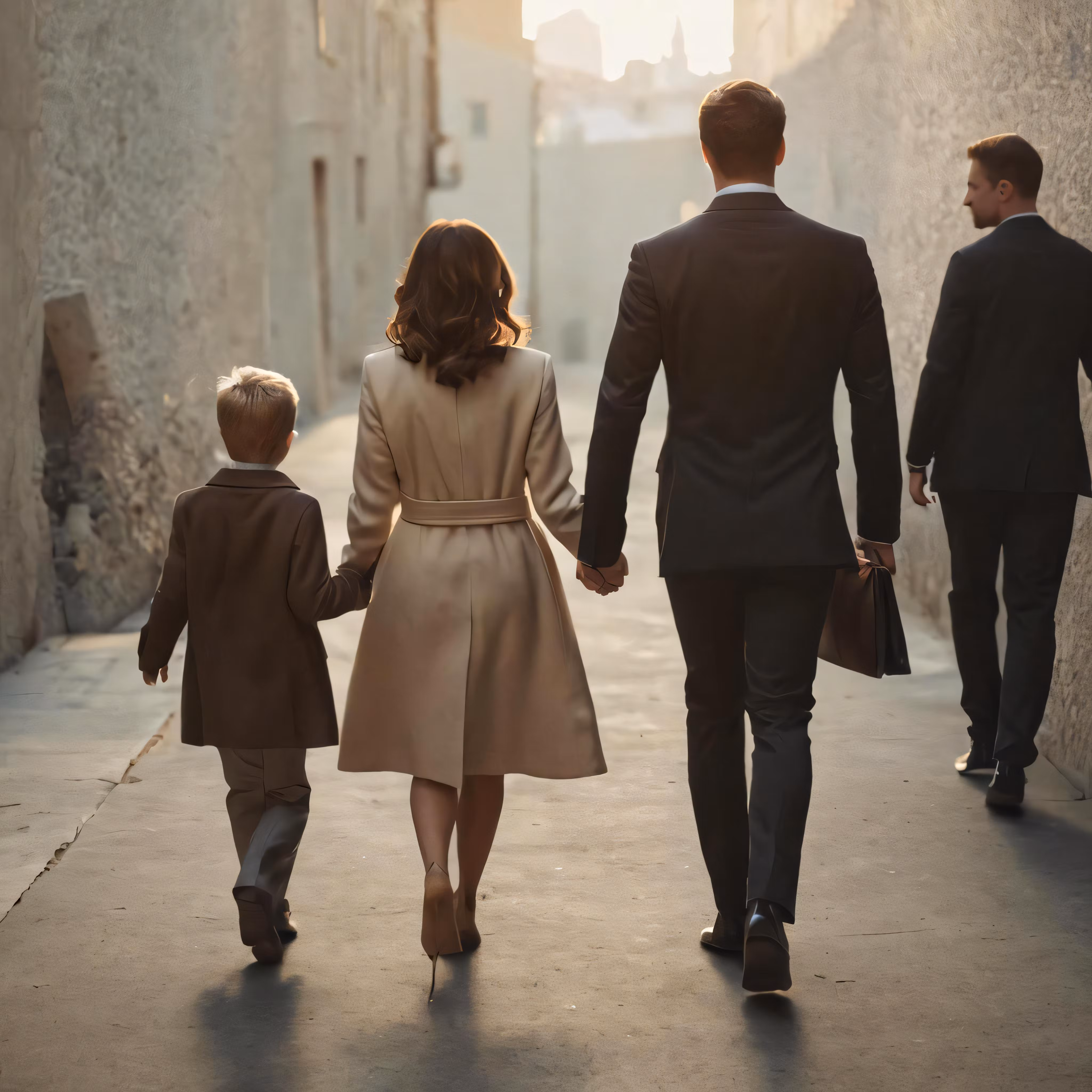 High resolution picture, free to use, the man and the little boy are holding hands as they walk through the narrow streets