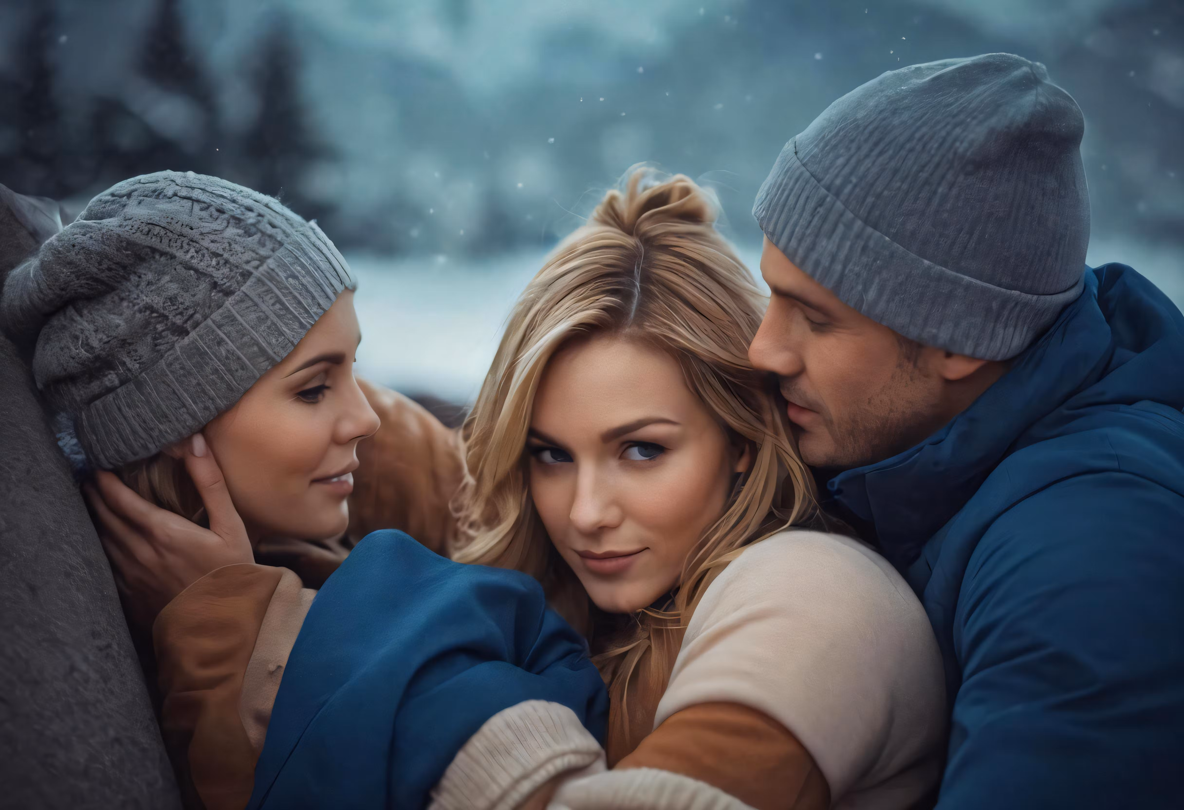 High resolution picture, free to use, the man and woman hug in front of a rock