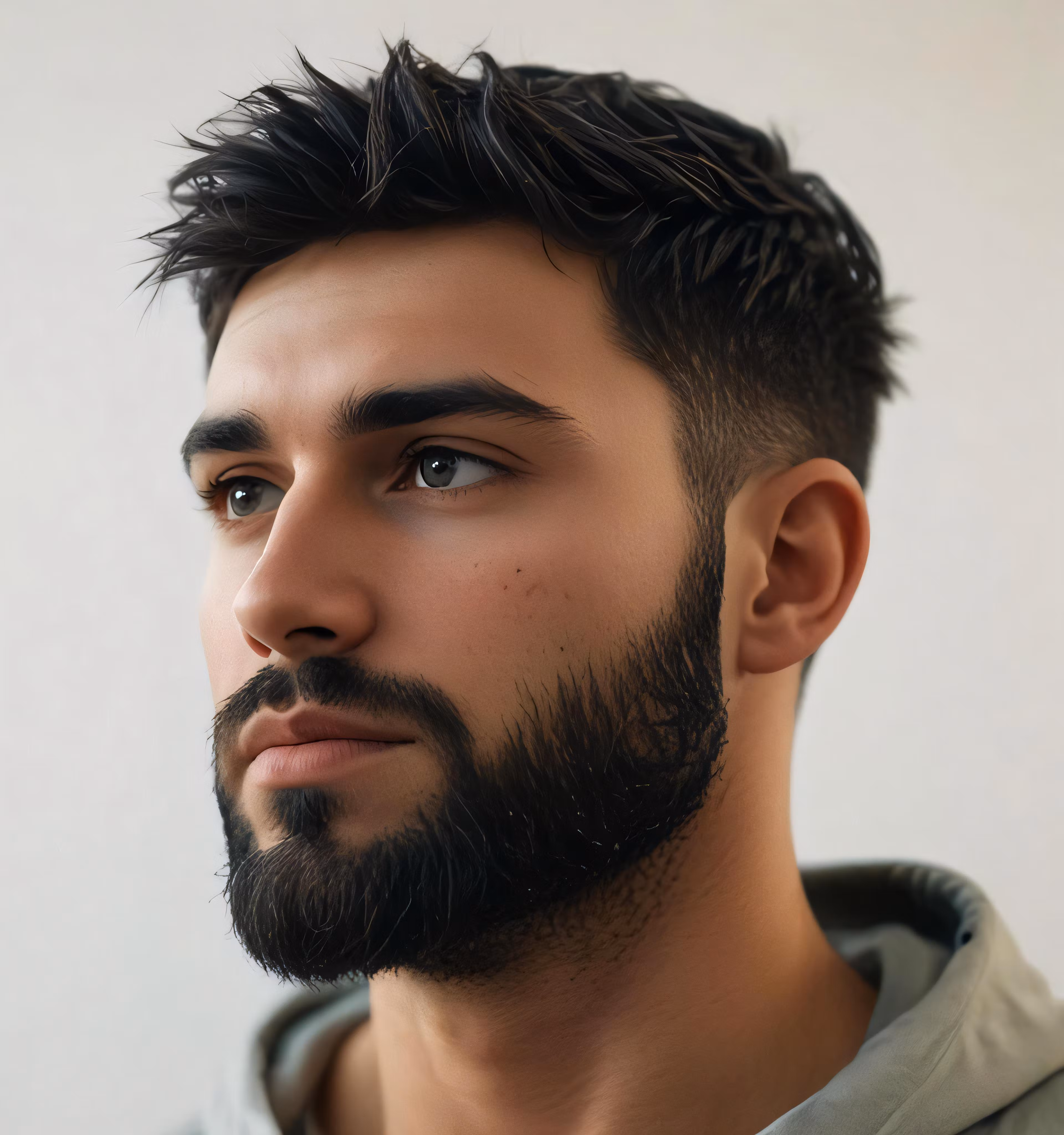High resolution picture, free to use, the man has a beard and an intense stare on his face