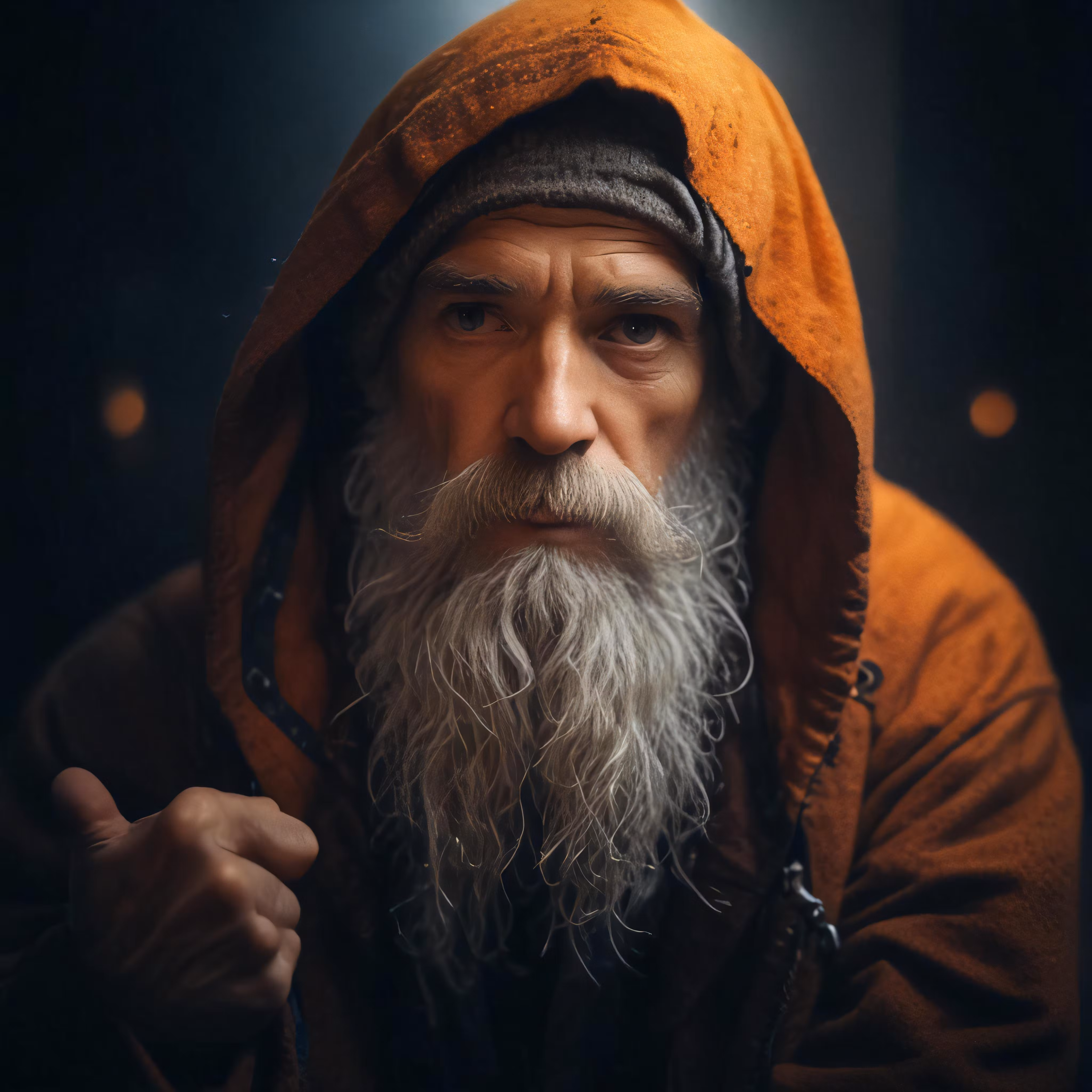 High resolution picture, free to use, the man has long hair and a orange hoodie