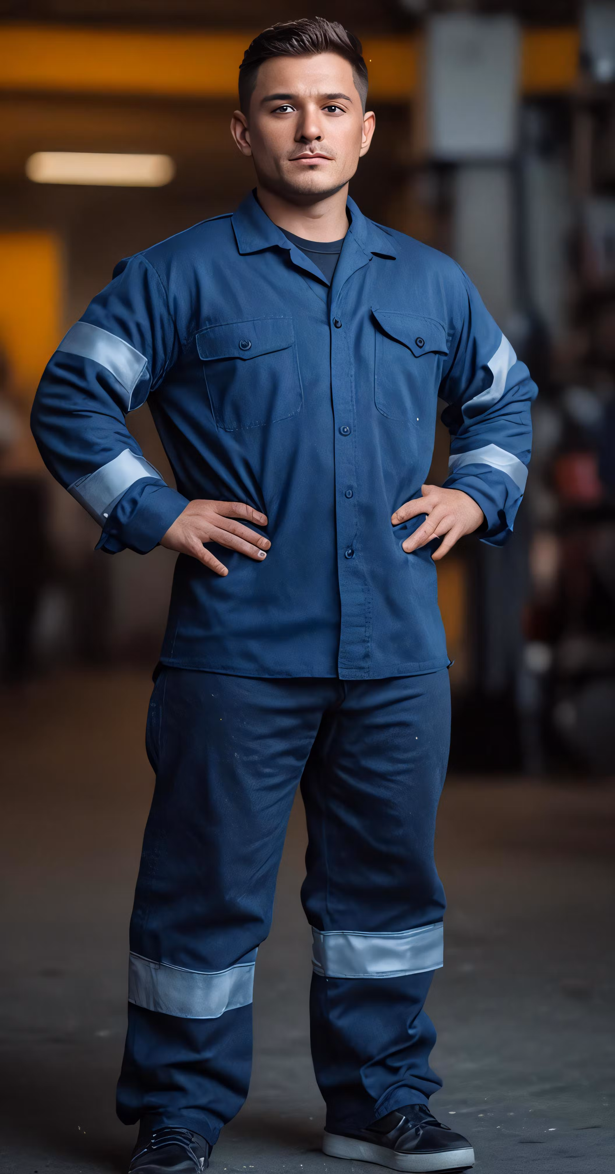 High resolution picture, free to use, the man in overalls is posing for a picture