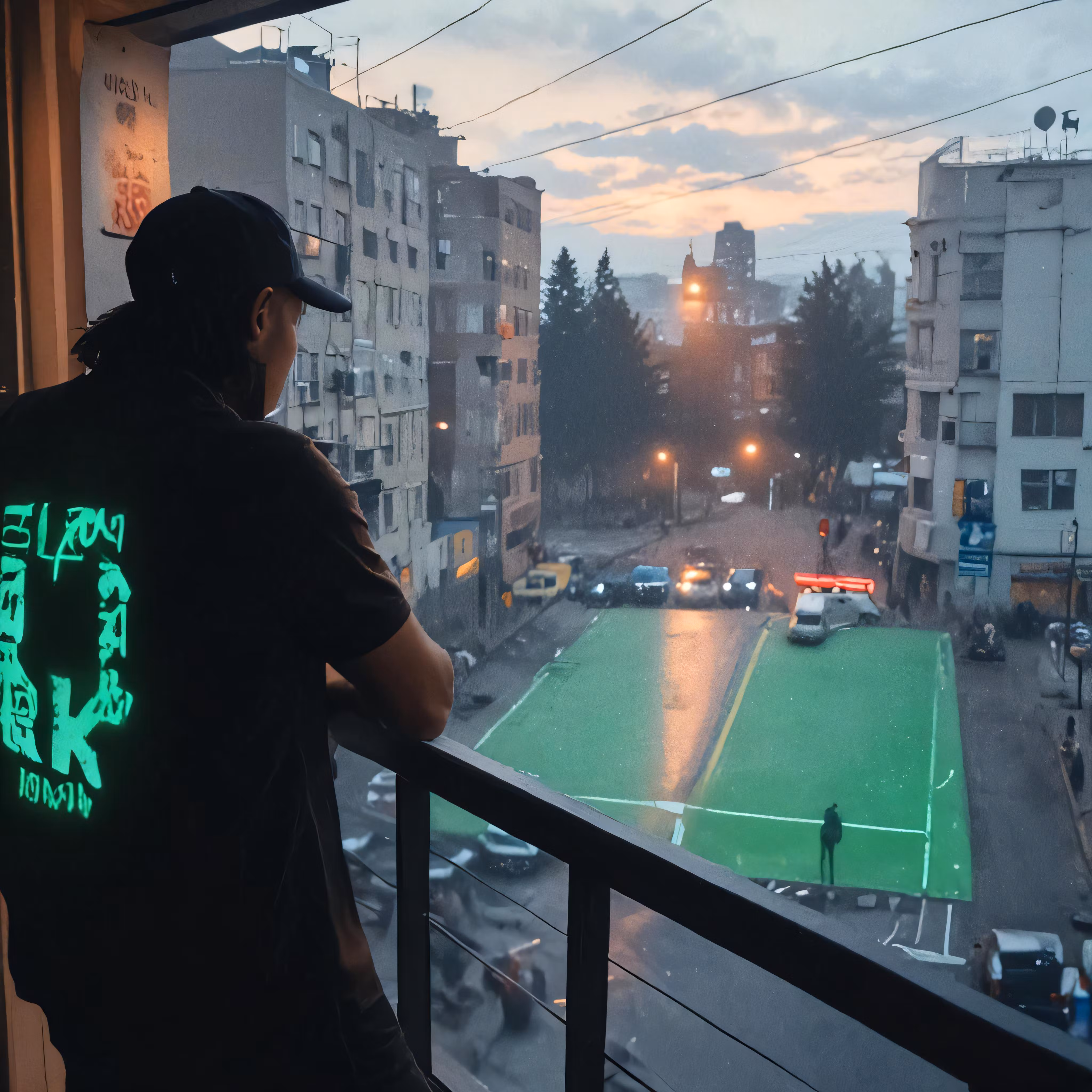 High resolution picture, free to use, the man is looking out the window at a large tennis court