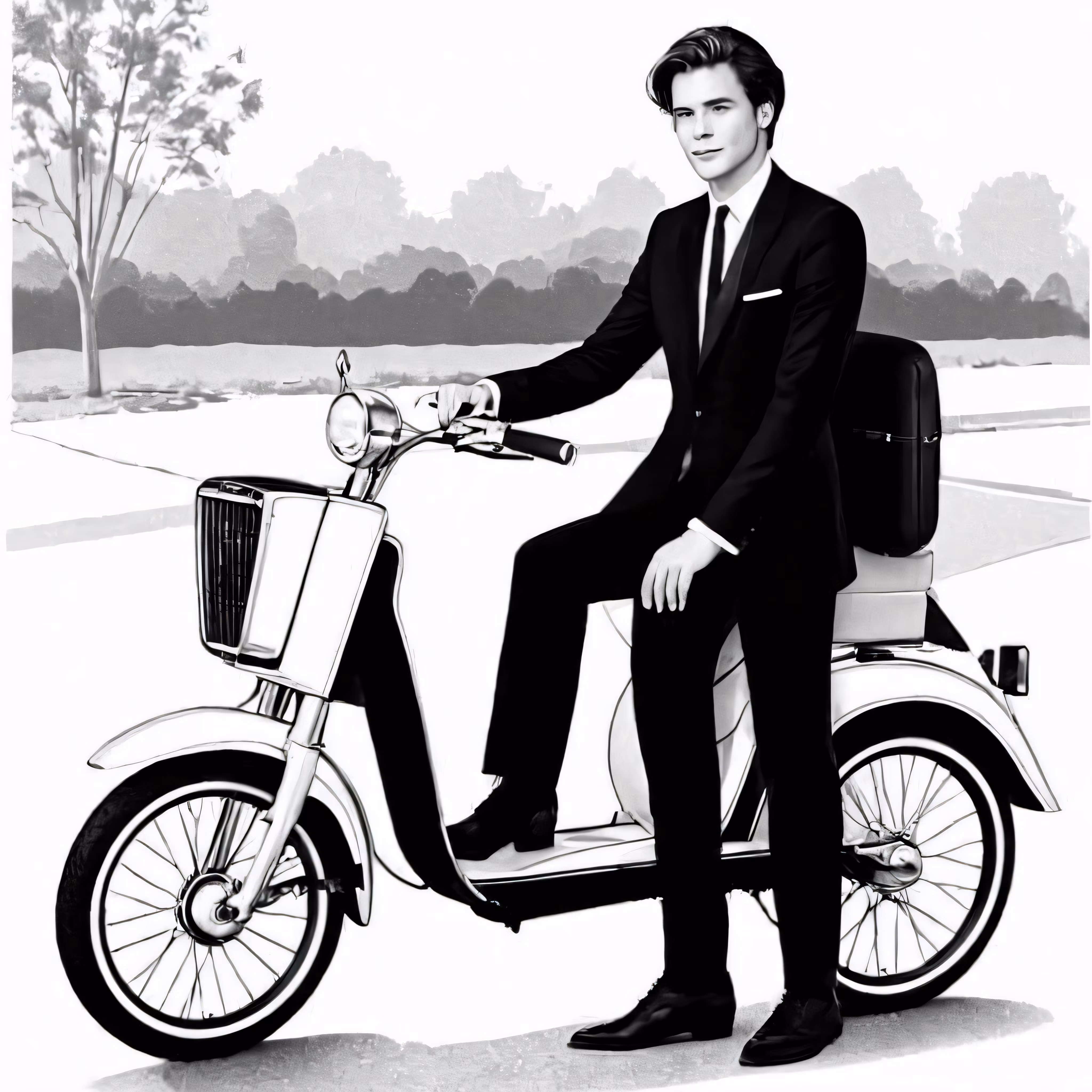 High resolution picture, free to use, the man is posing for a drawing on the motorcycle