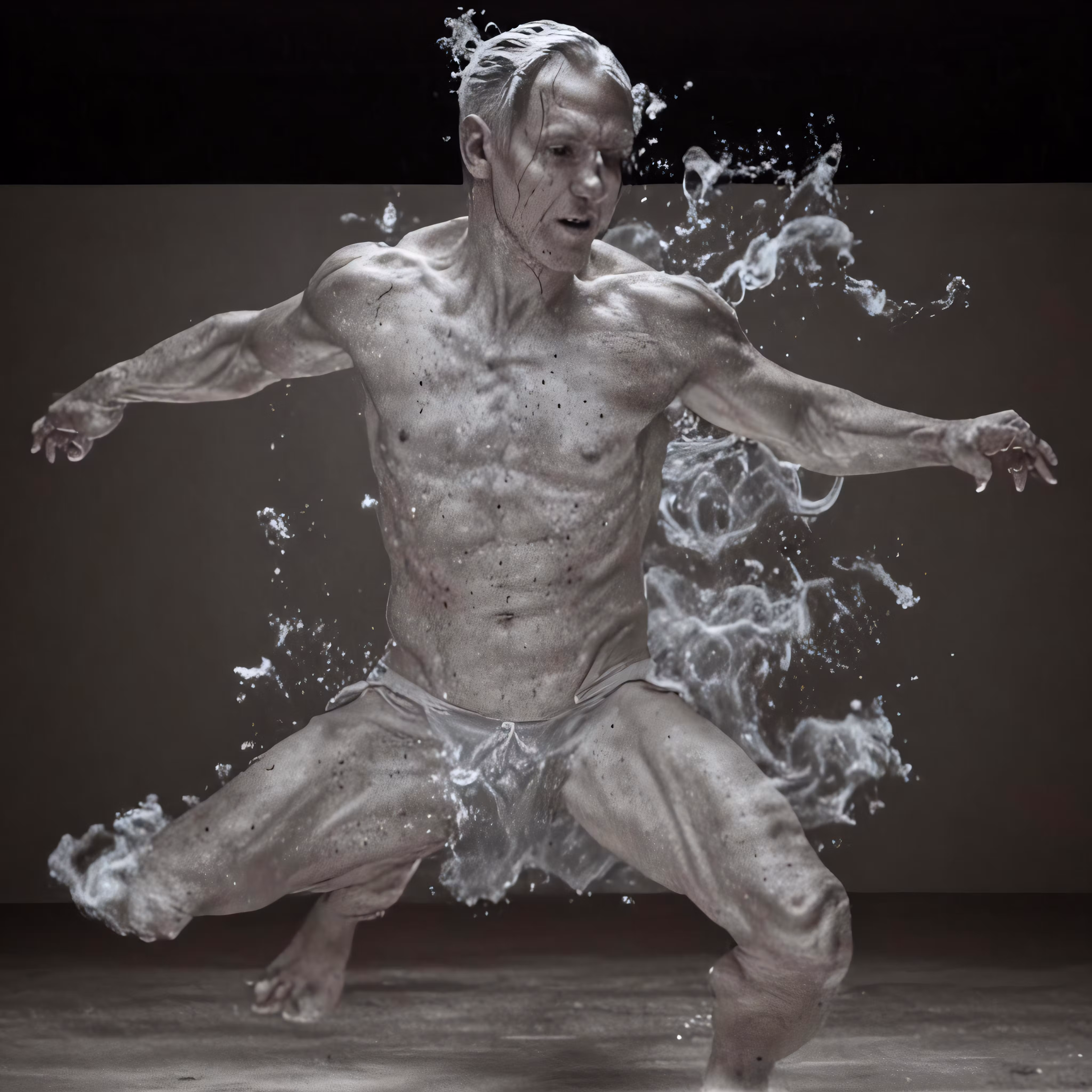 High resolution picture, free to use, the man is running through the water with his hands out