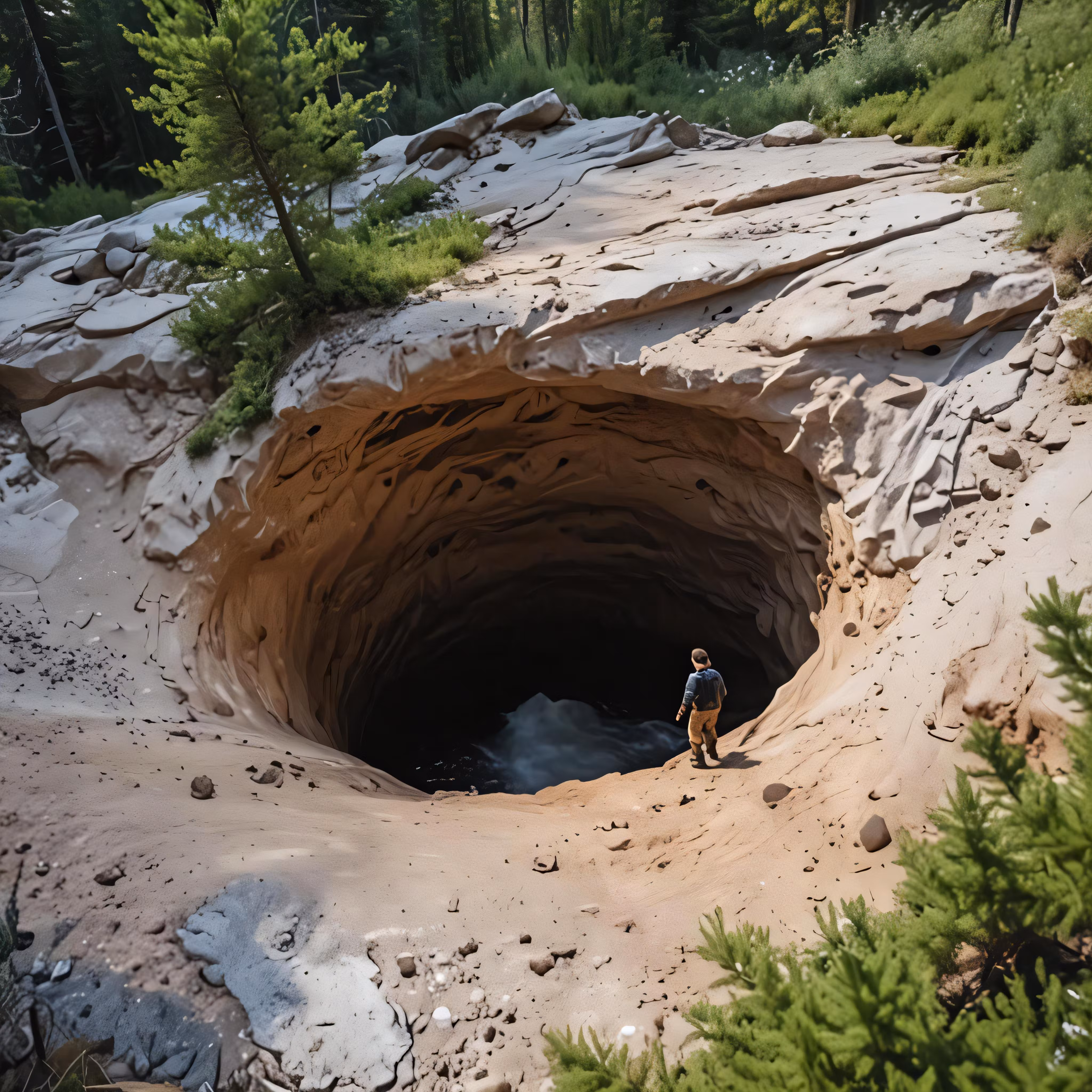 High resolution picture, free to use, the man is standing near a hole in the ground
