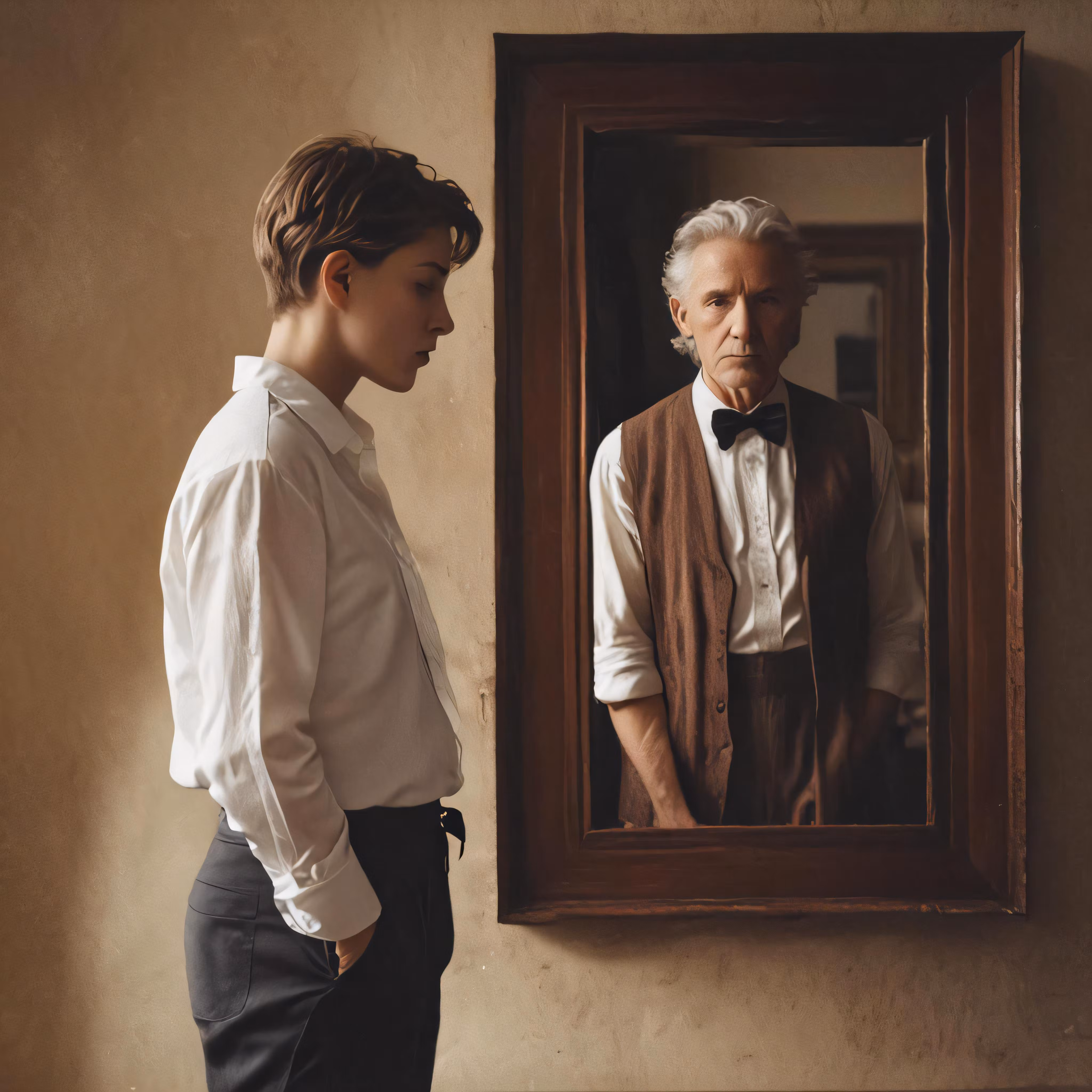 High resolution picture, free to use, the man standing in front of the mirror is looking at his reflection