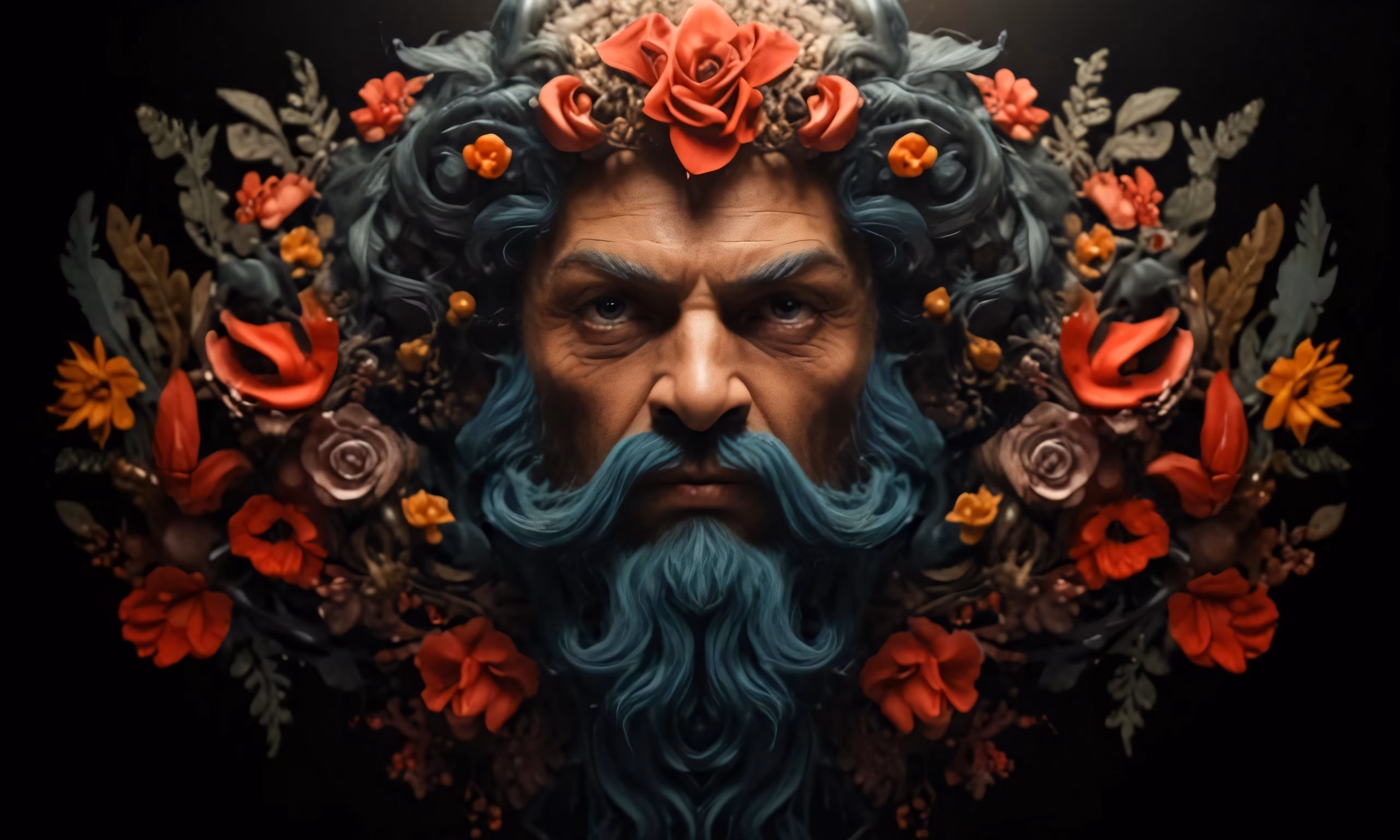 High resolution picture, free to use, the man with the blue hair and beard is depicted