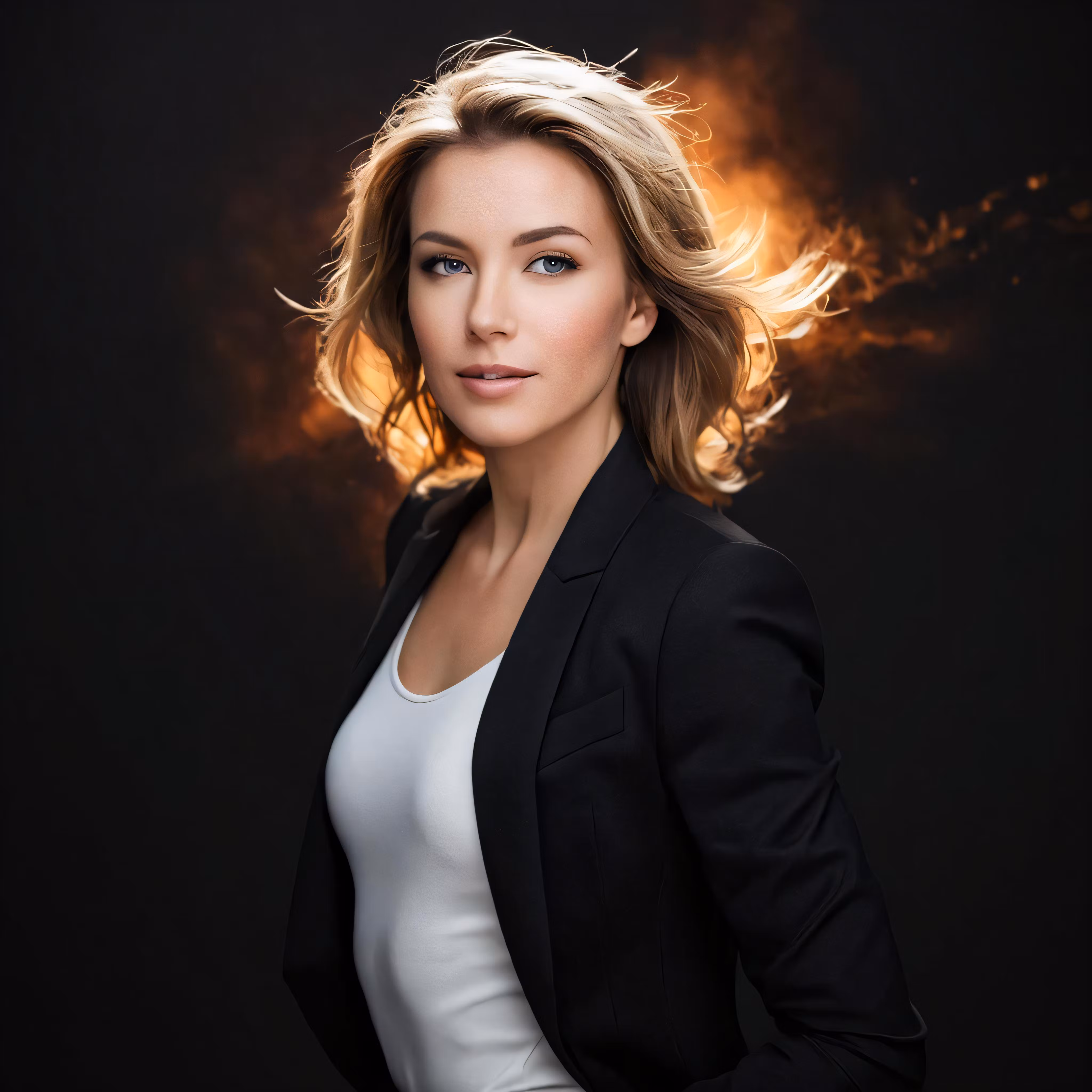 High resolution picture, free to use, the model wears a white dress underneath her blazer