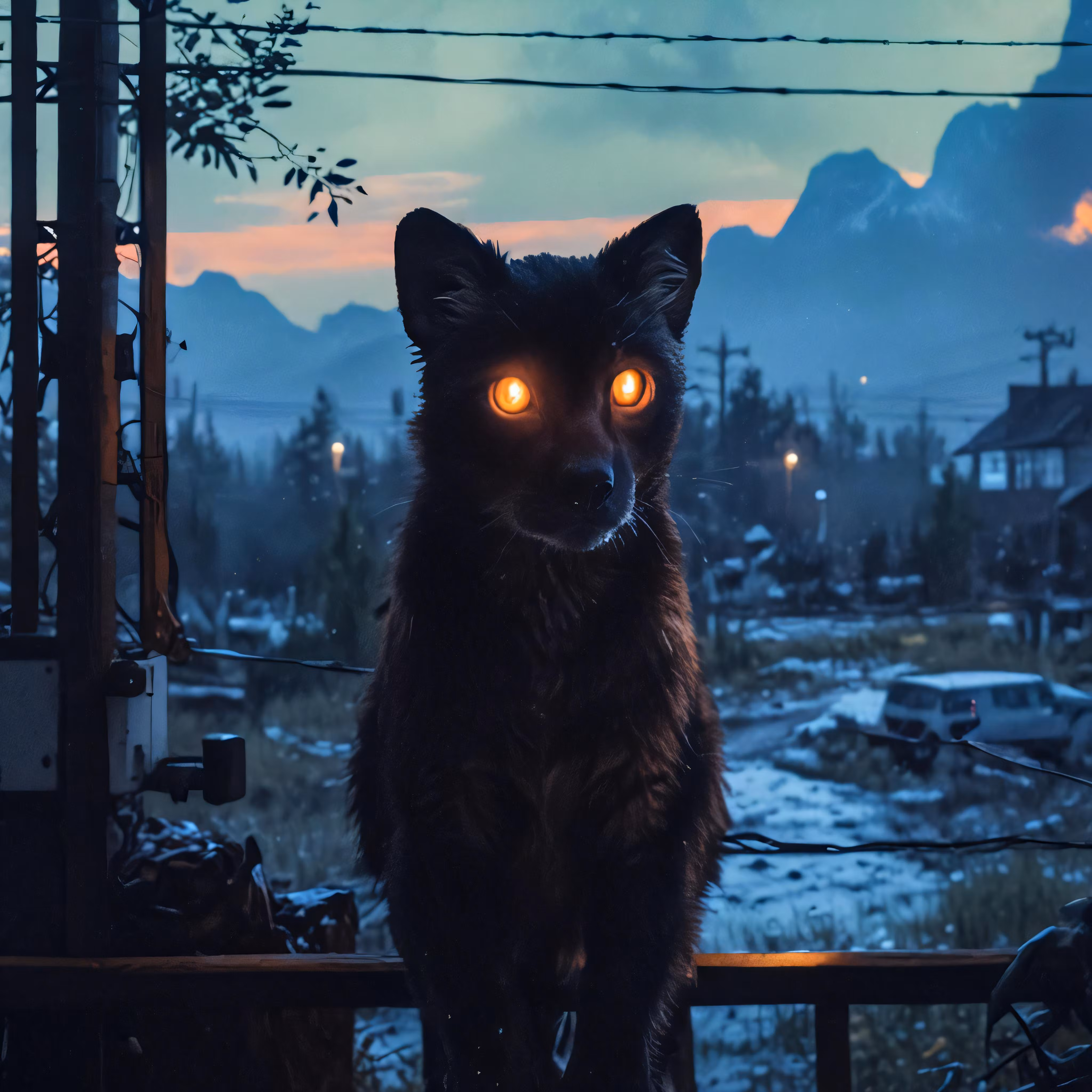 High resolution picture, free to use, the monster cat is looking up at something glowing bright