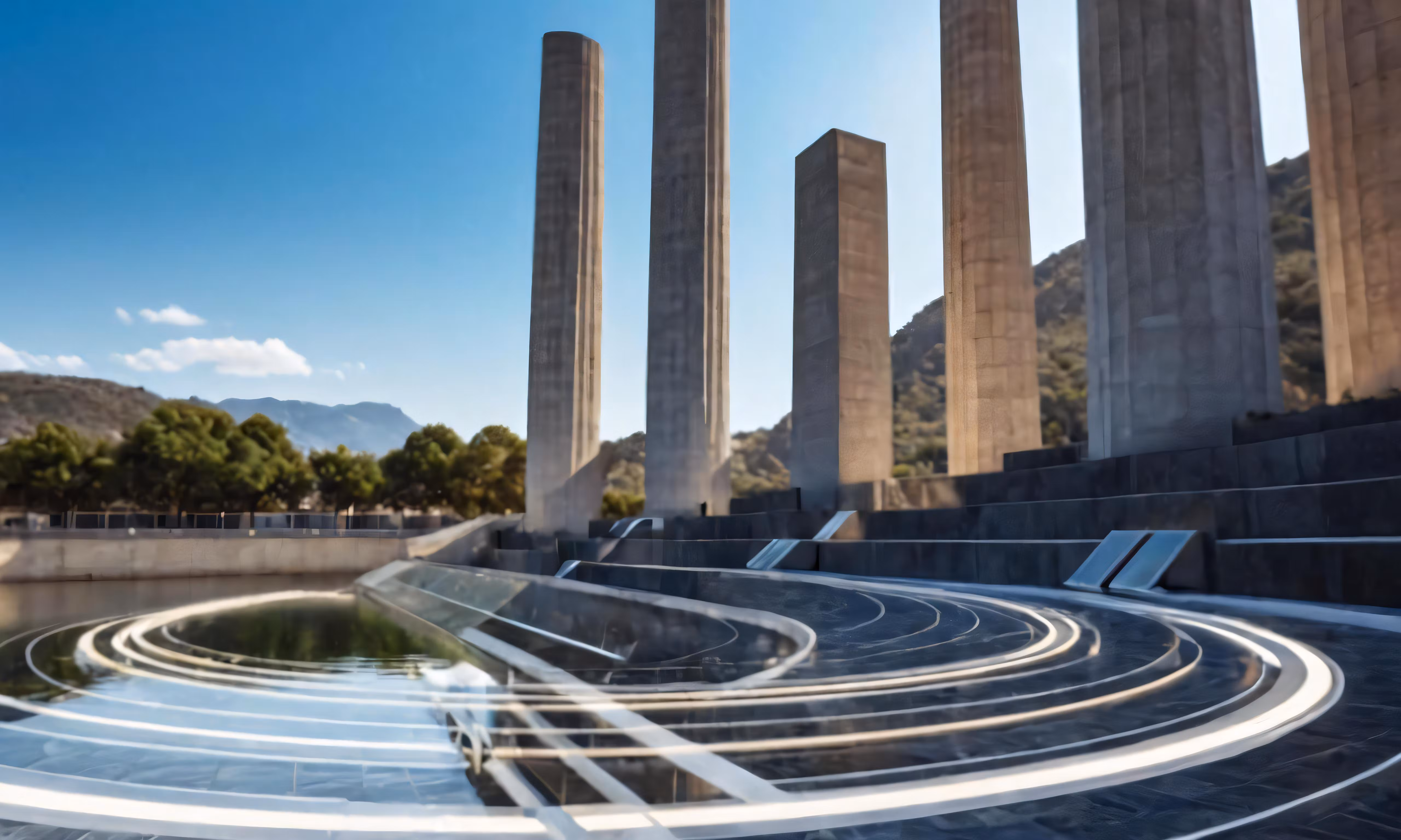 High resolution picture, free to use, the monument in an outdoor cemetery with people walking and looking on
