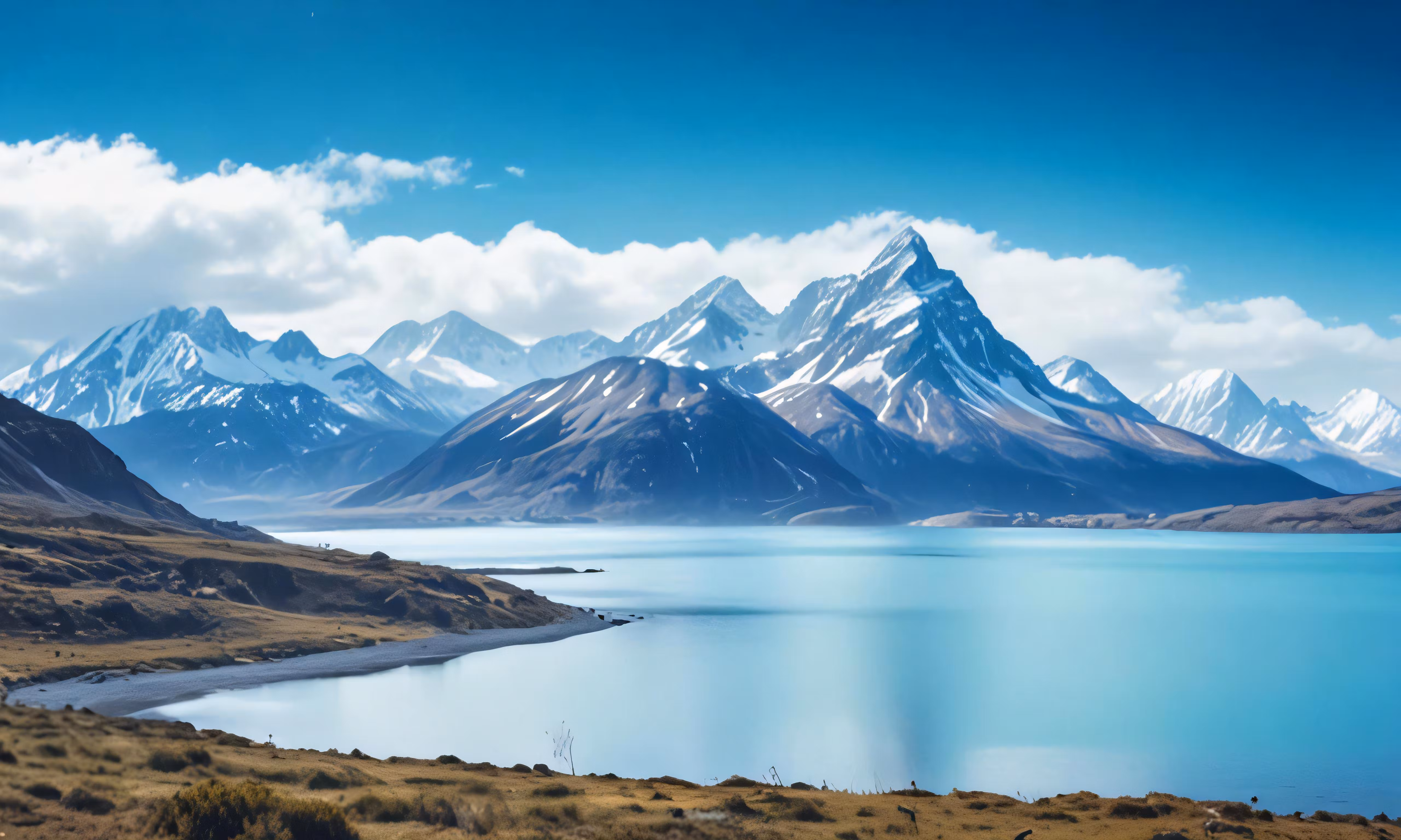 High resolution picture, free to use, the mountain range in the distance is covered with snow