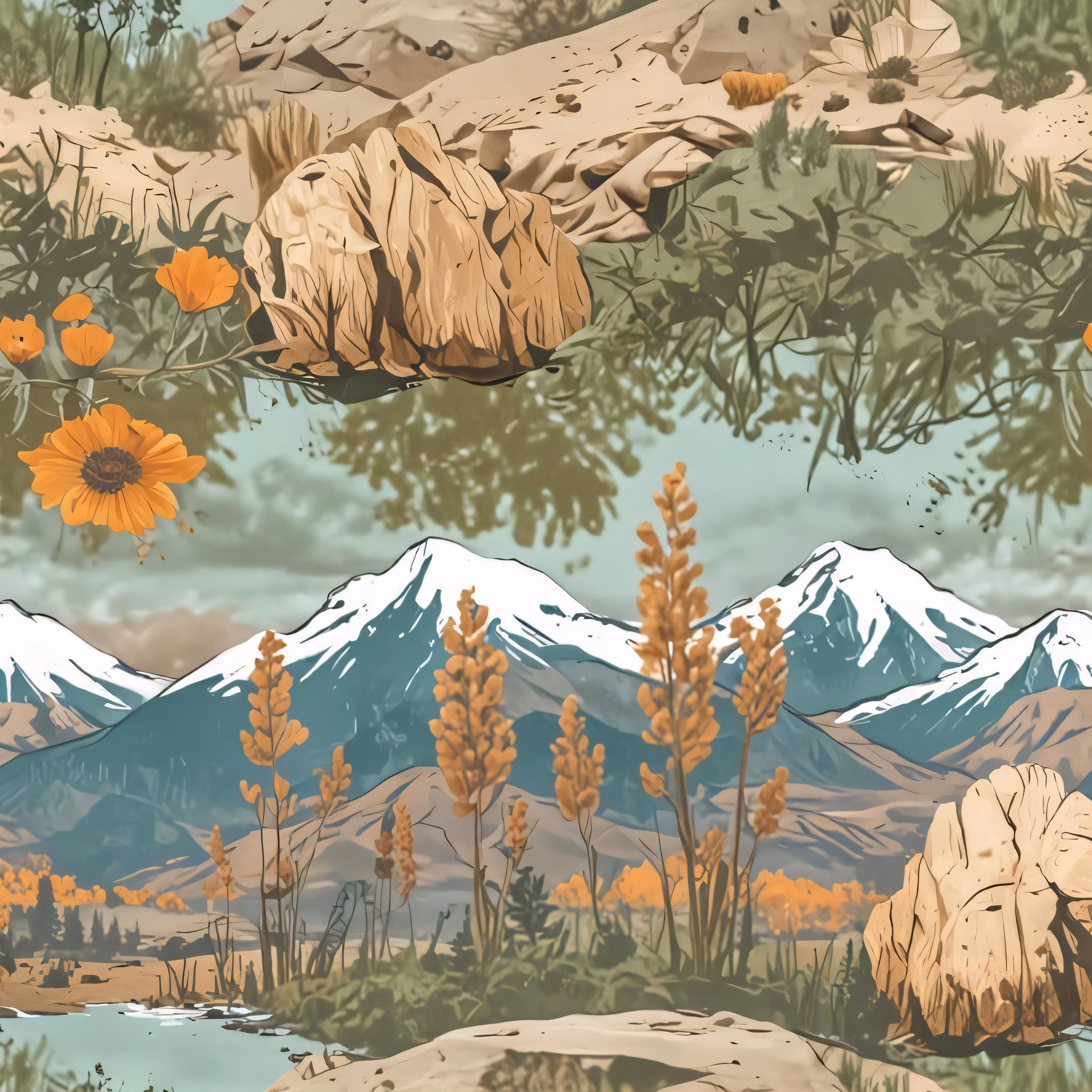 High resolution picture, free to use, the mountains are seen with many plants and flowers in it