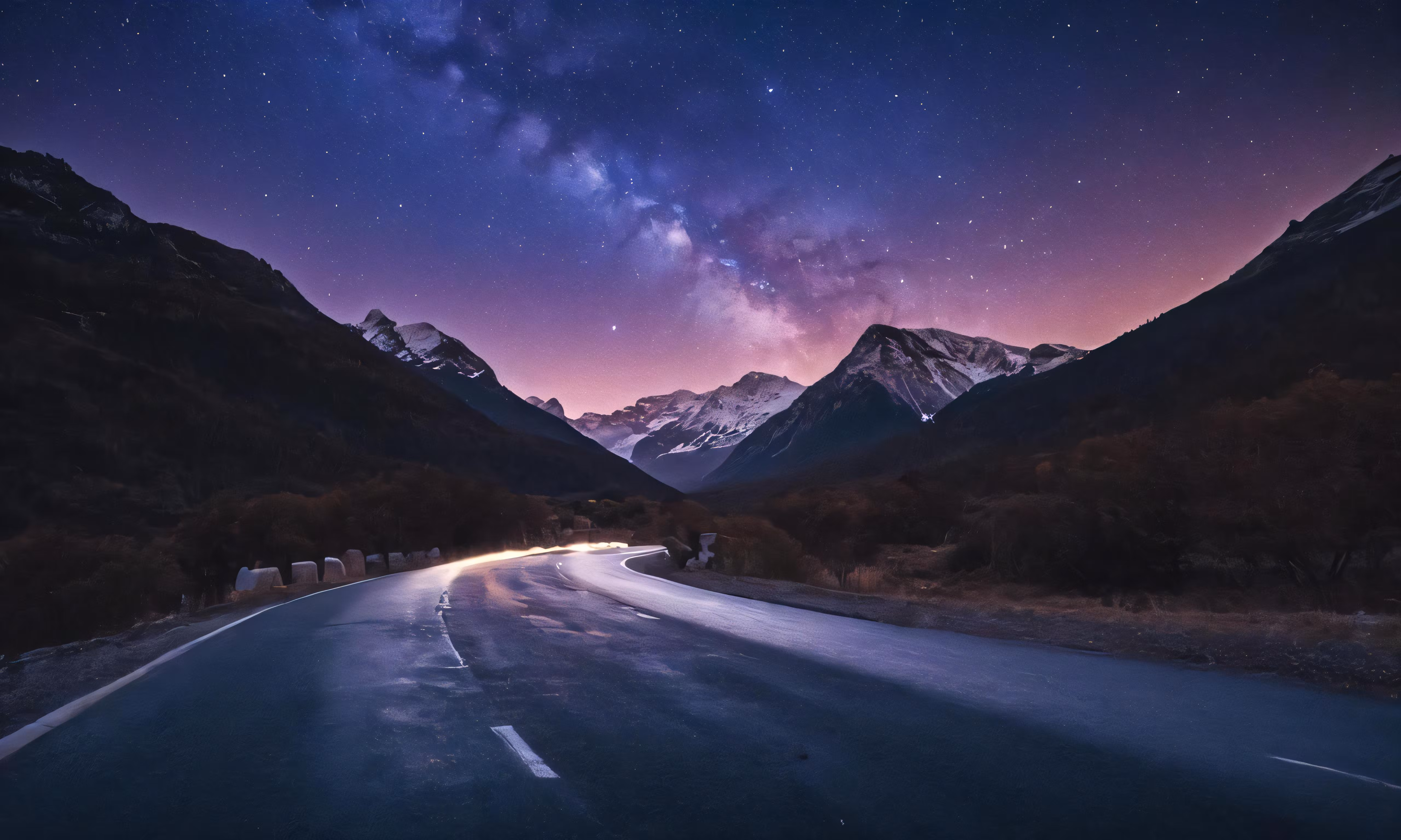High resolution picture, free to use, the night sky is reflecting off the mountain range
