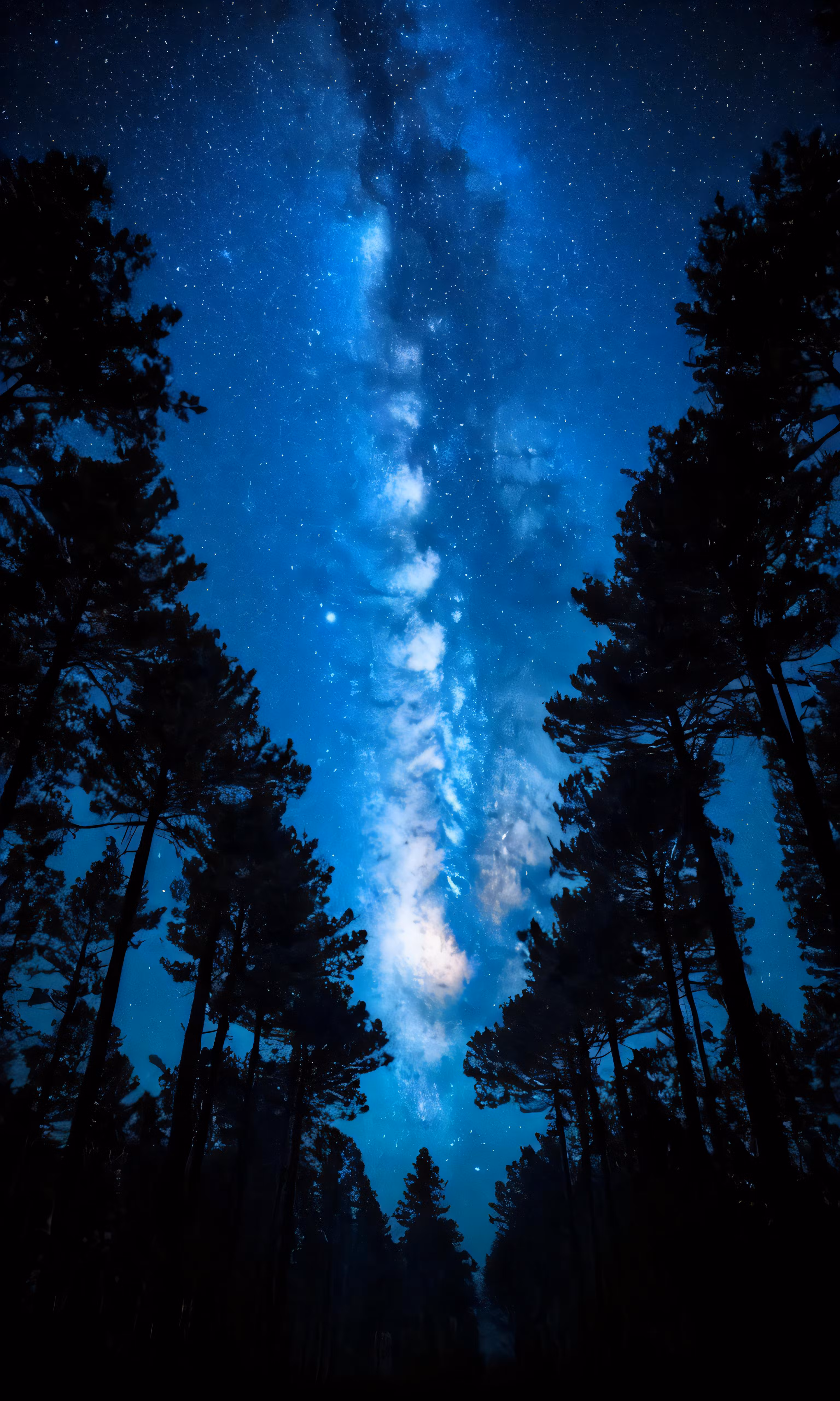 High resolution picture, free to use, the night sky with stars and trees surrounding it