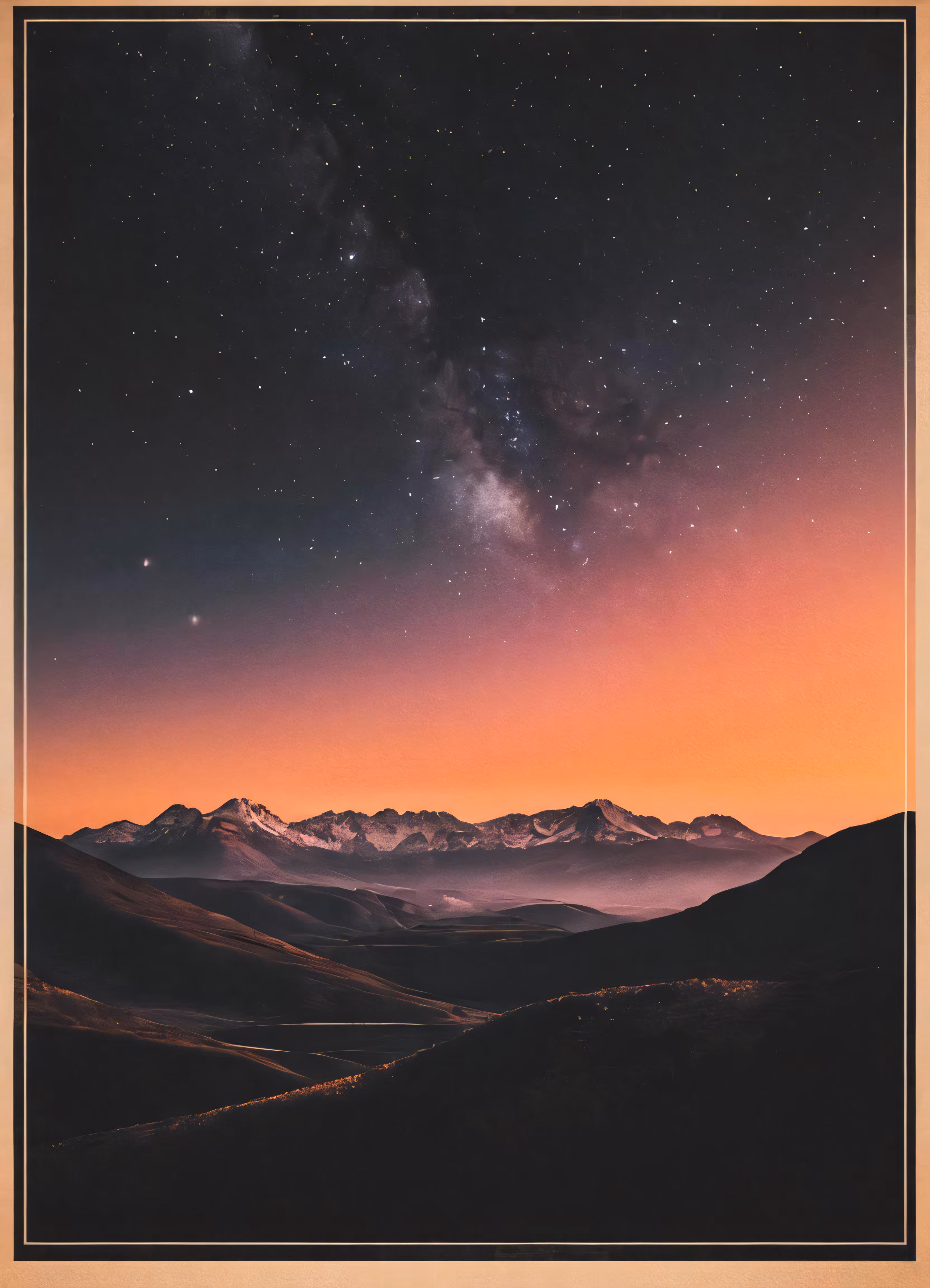 High resolution picture, free to use, the night sky with stars over mountains, and clouds
