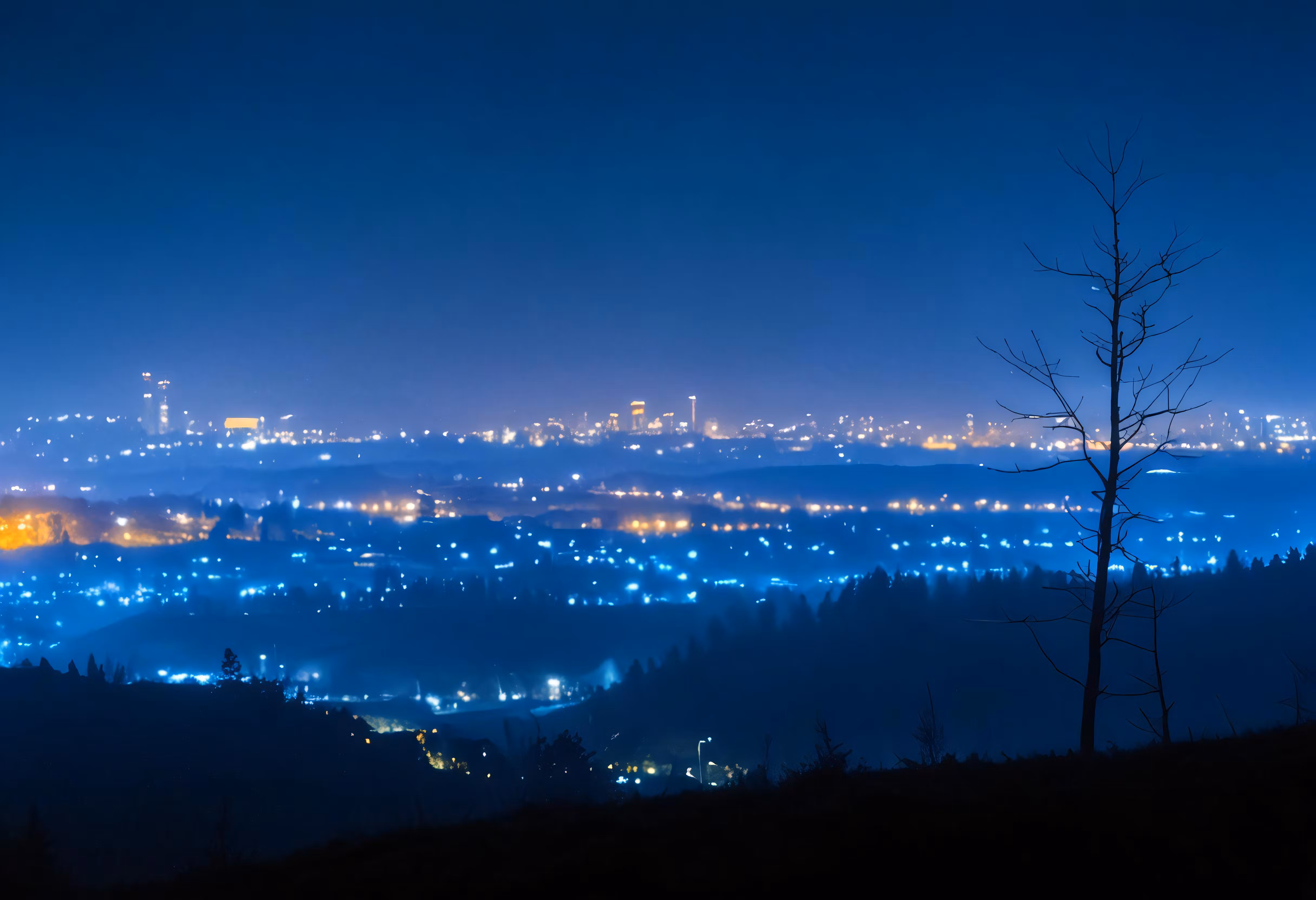 High resolution picture, free to use, the night view from a hill overlooking a city