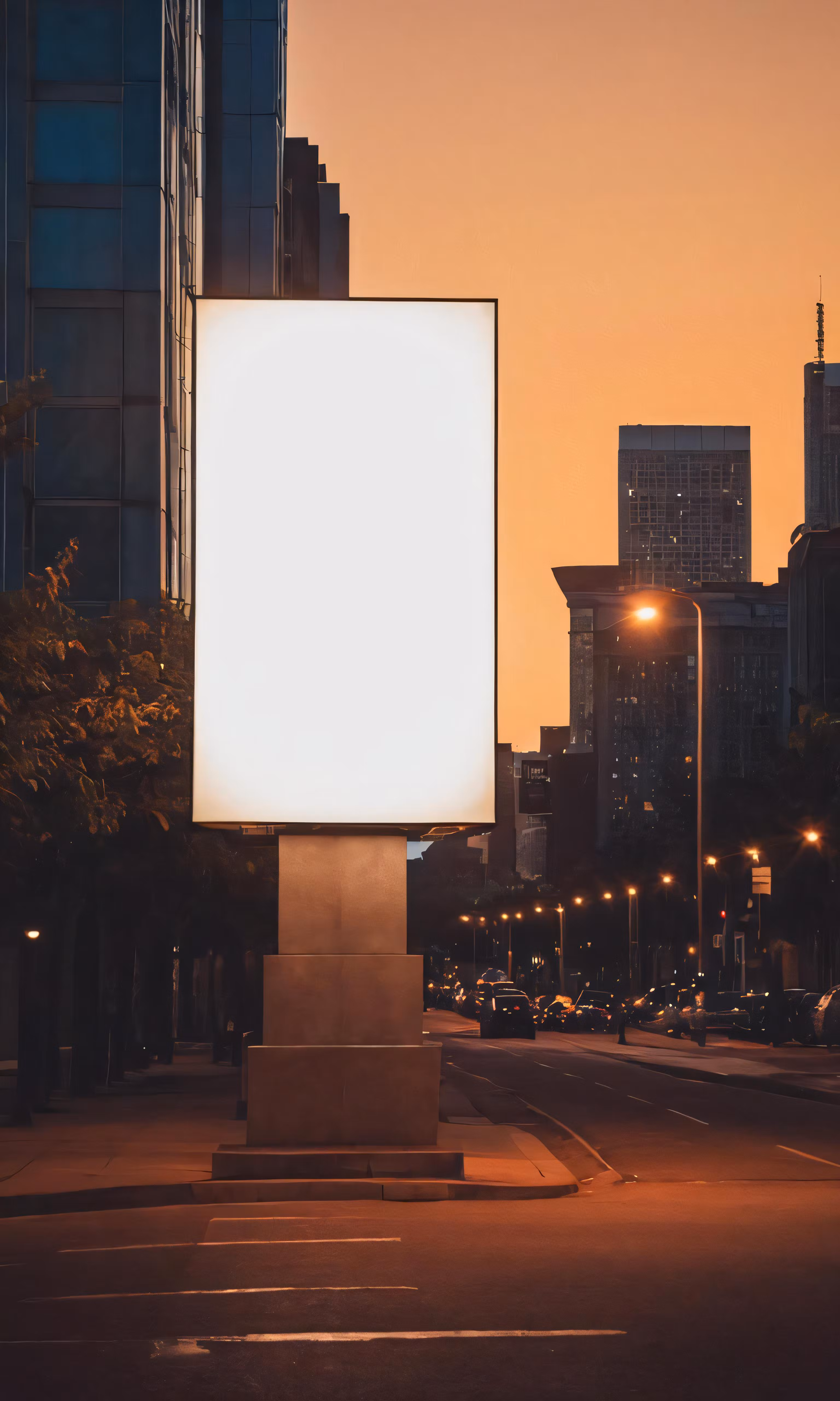 High resolution picture, free to use, the official logo for the 50 /a billboard on the corner at night with buildings in the background