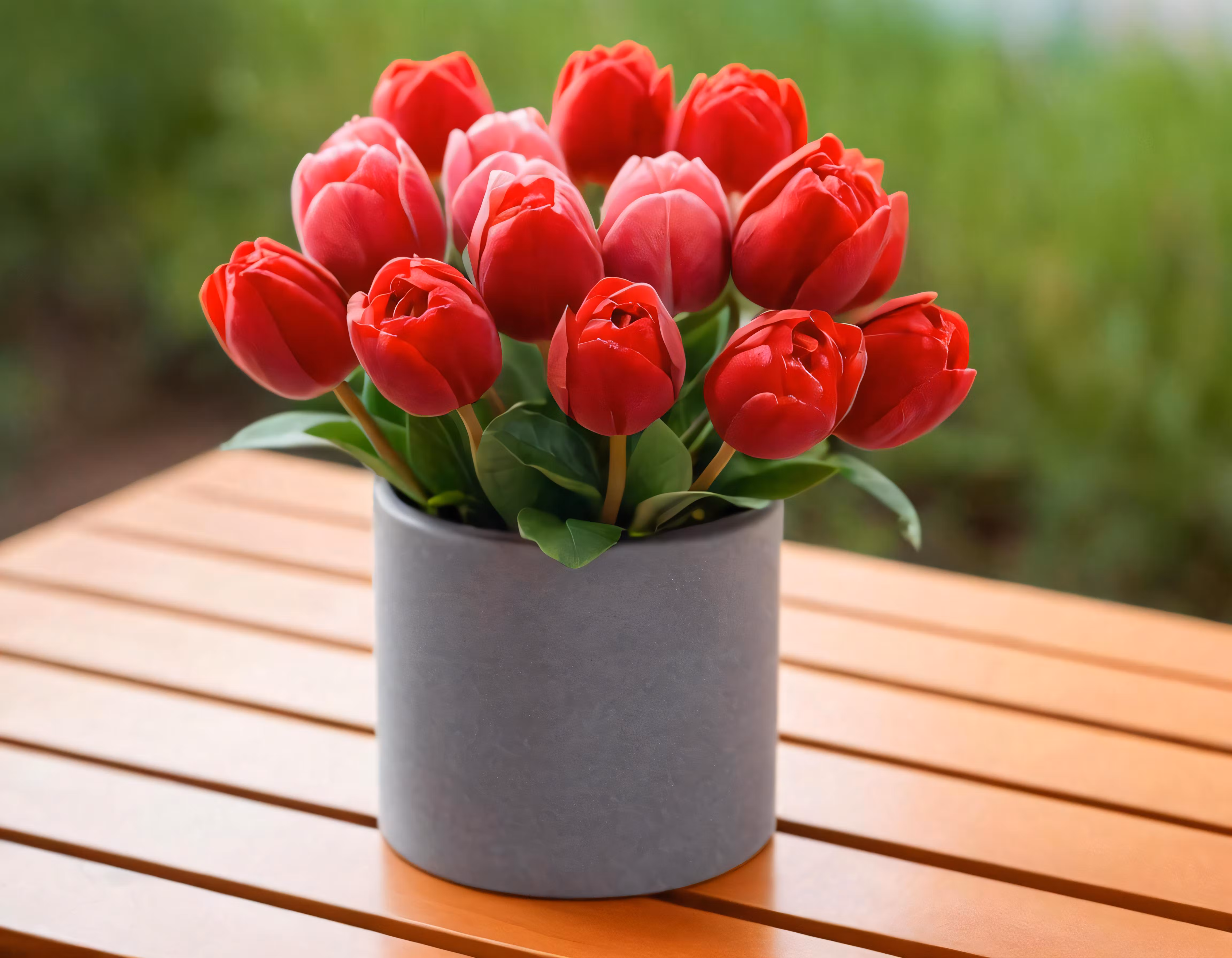High resolution picture, free to use, the official logo for the 50 /a bunch of flowers in a gray pot on a wooden table