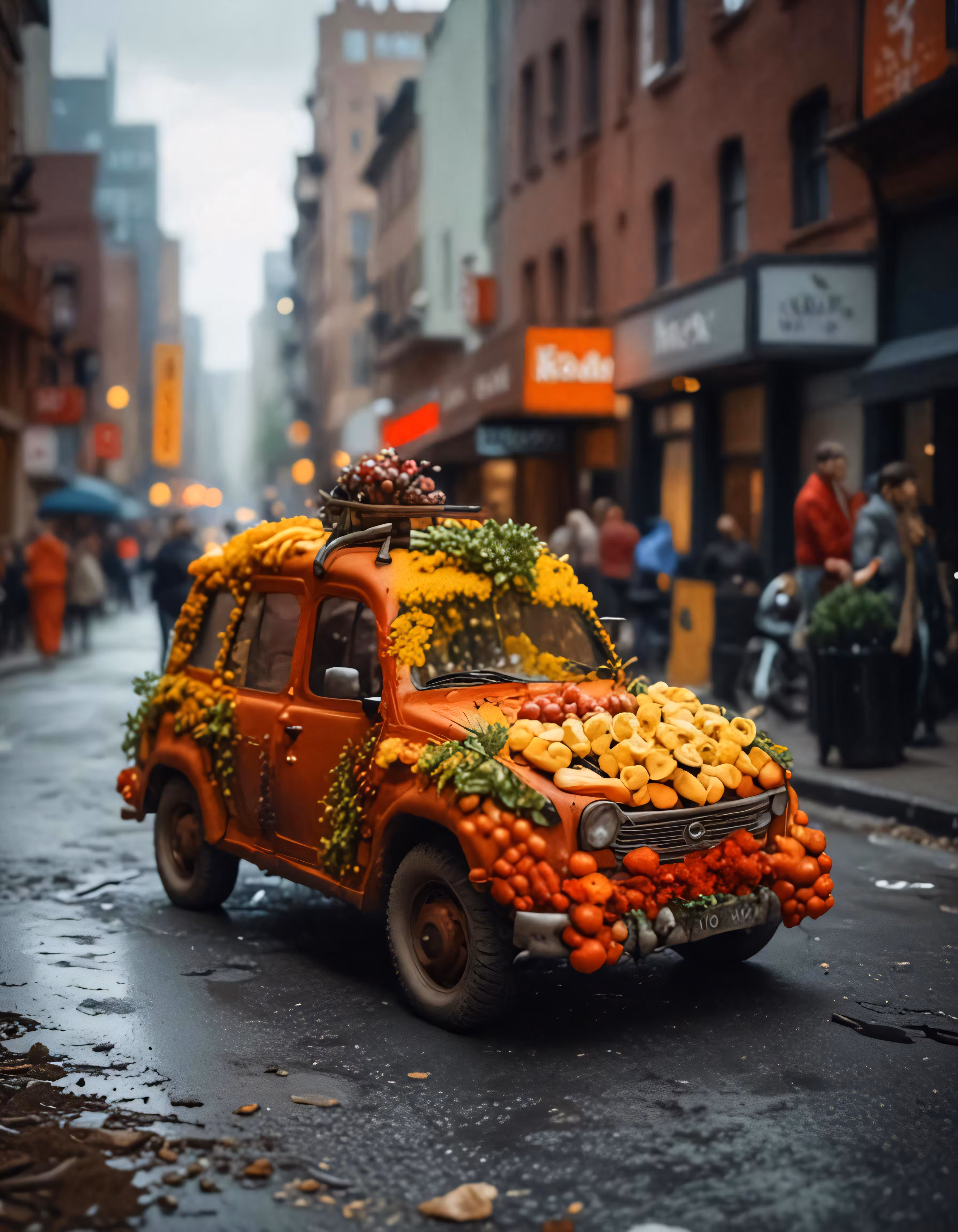 High resolution picture, free to use, the official logo for the 50 /a car is decorated in fruits and vegetables