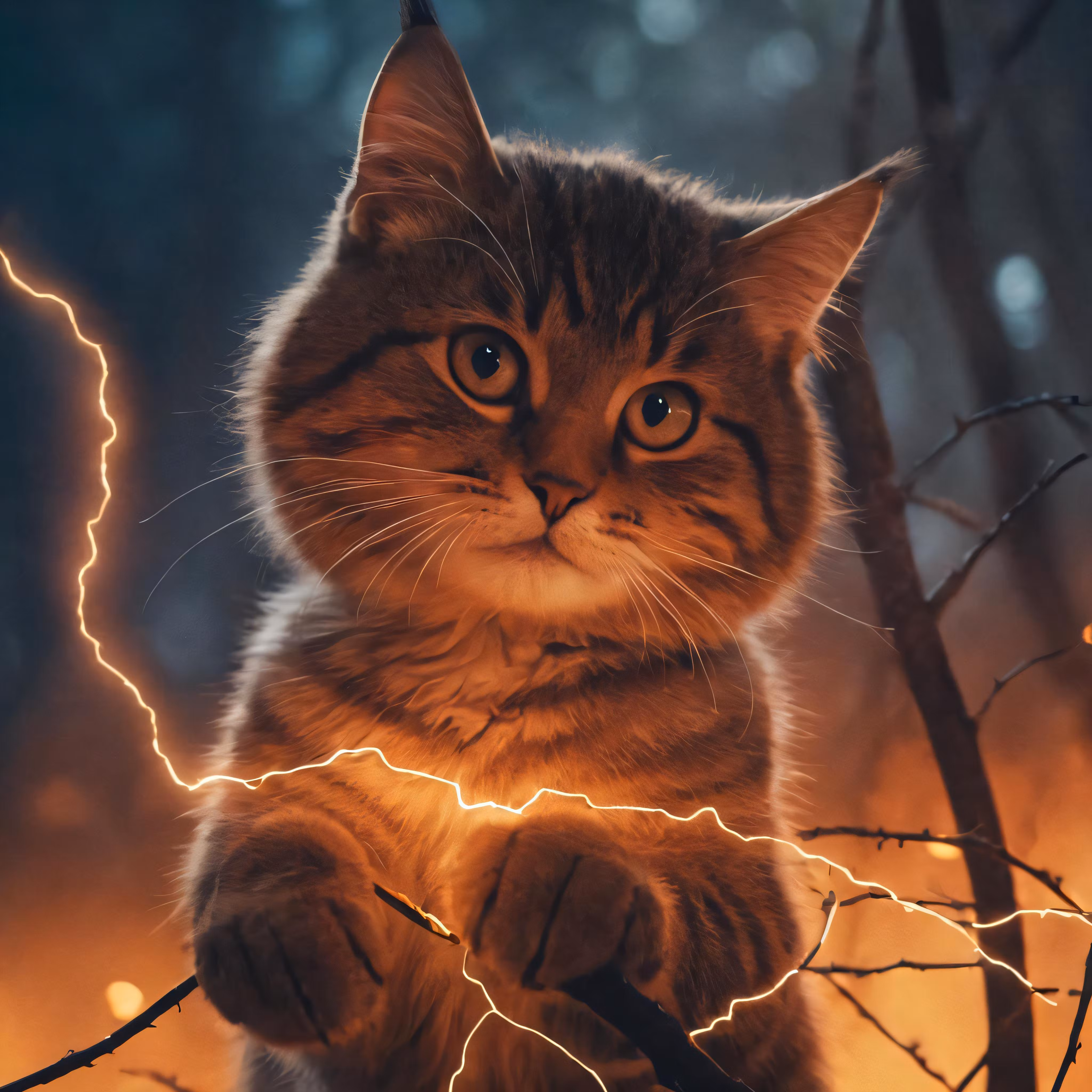High resolution picture, free to use, the official logo for the 50 /a cat sitting on top of a branch with a lightening effect