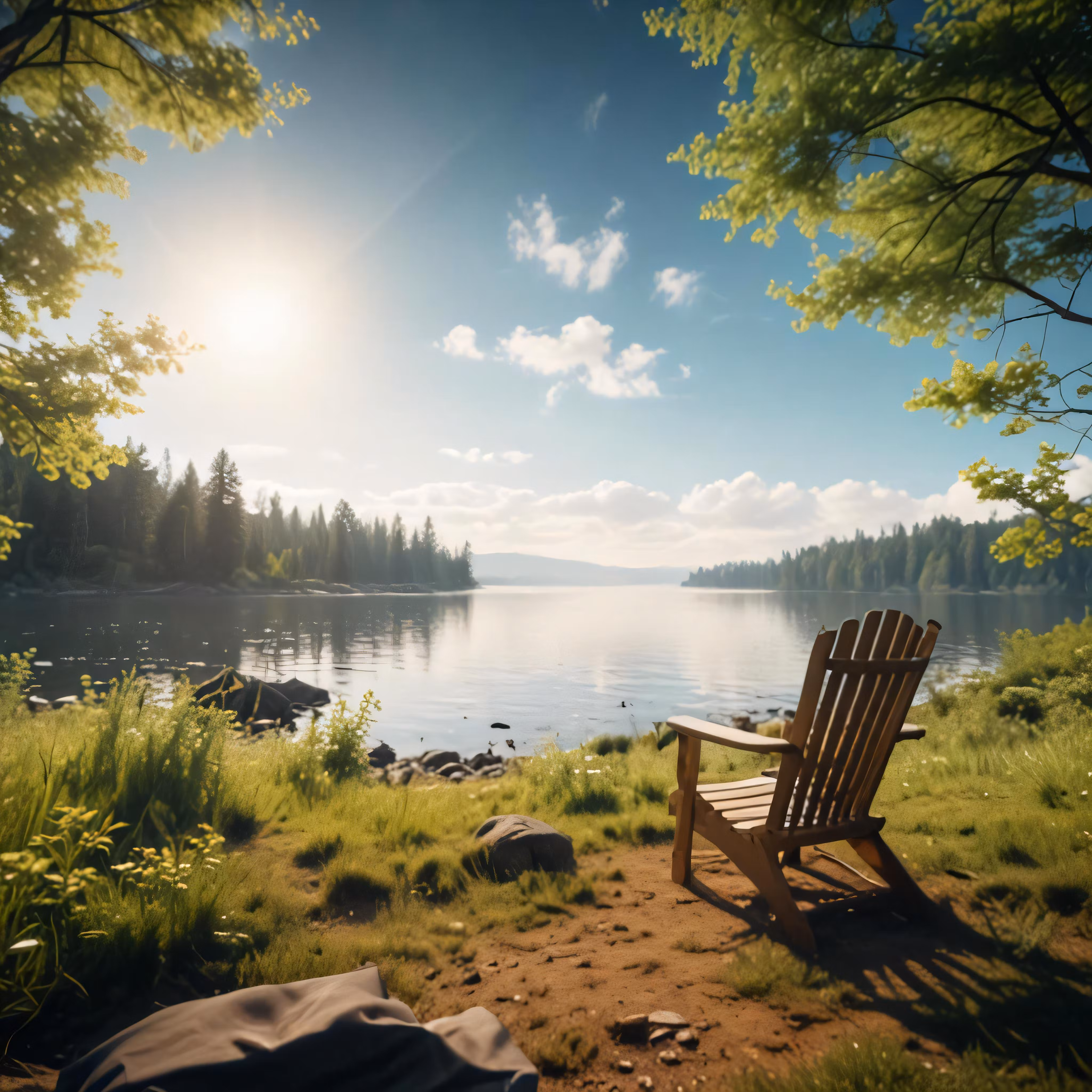 High resolution picture, free to use, the official logo for the 50 /a chair on the shore of a lake and the sun shines in the background