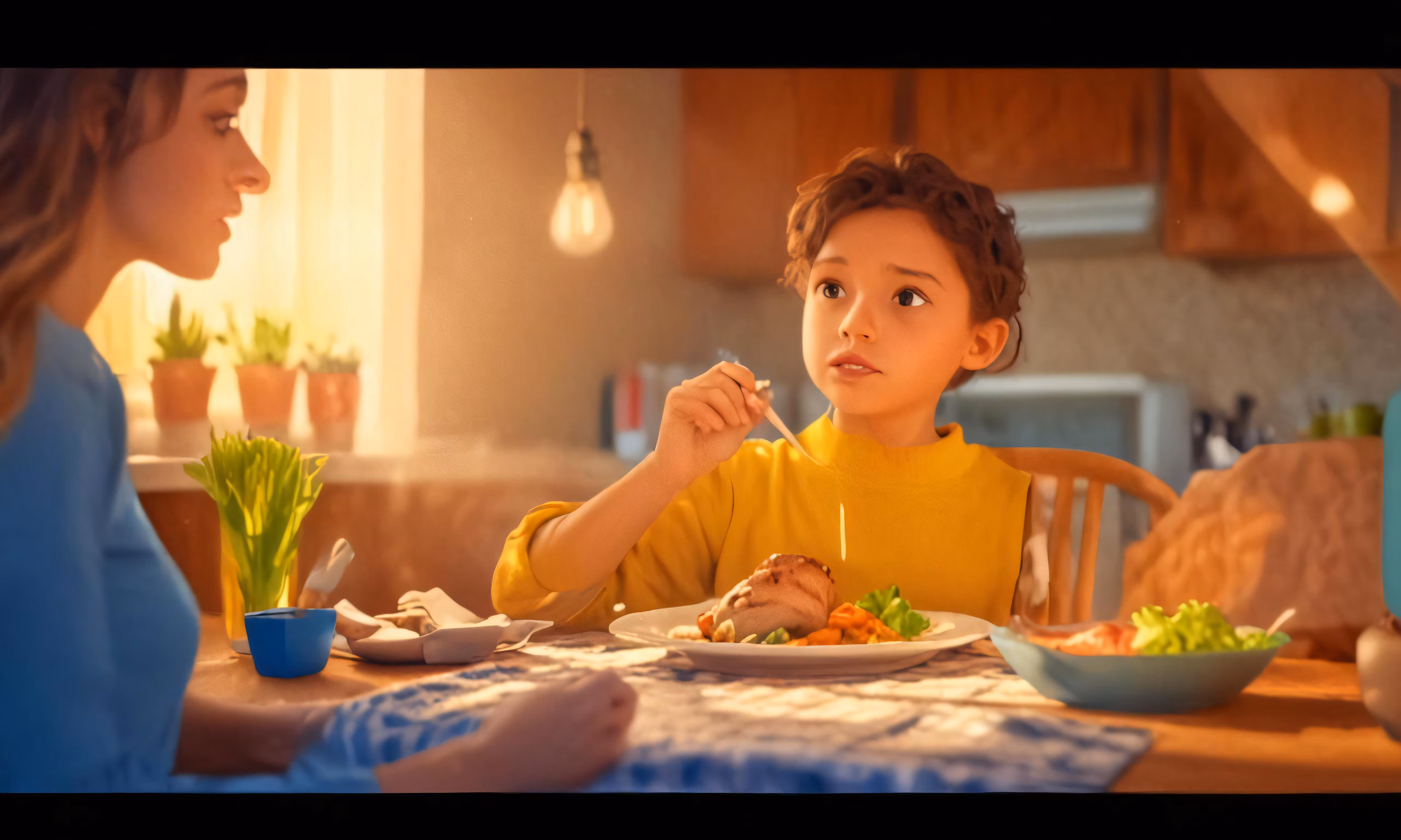 High resolution picture, free to use, the official logo for the 50 /a child eating dinner at the dining table with another person