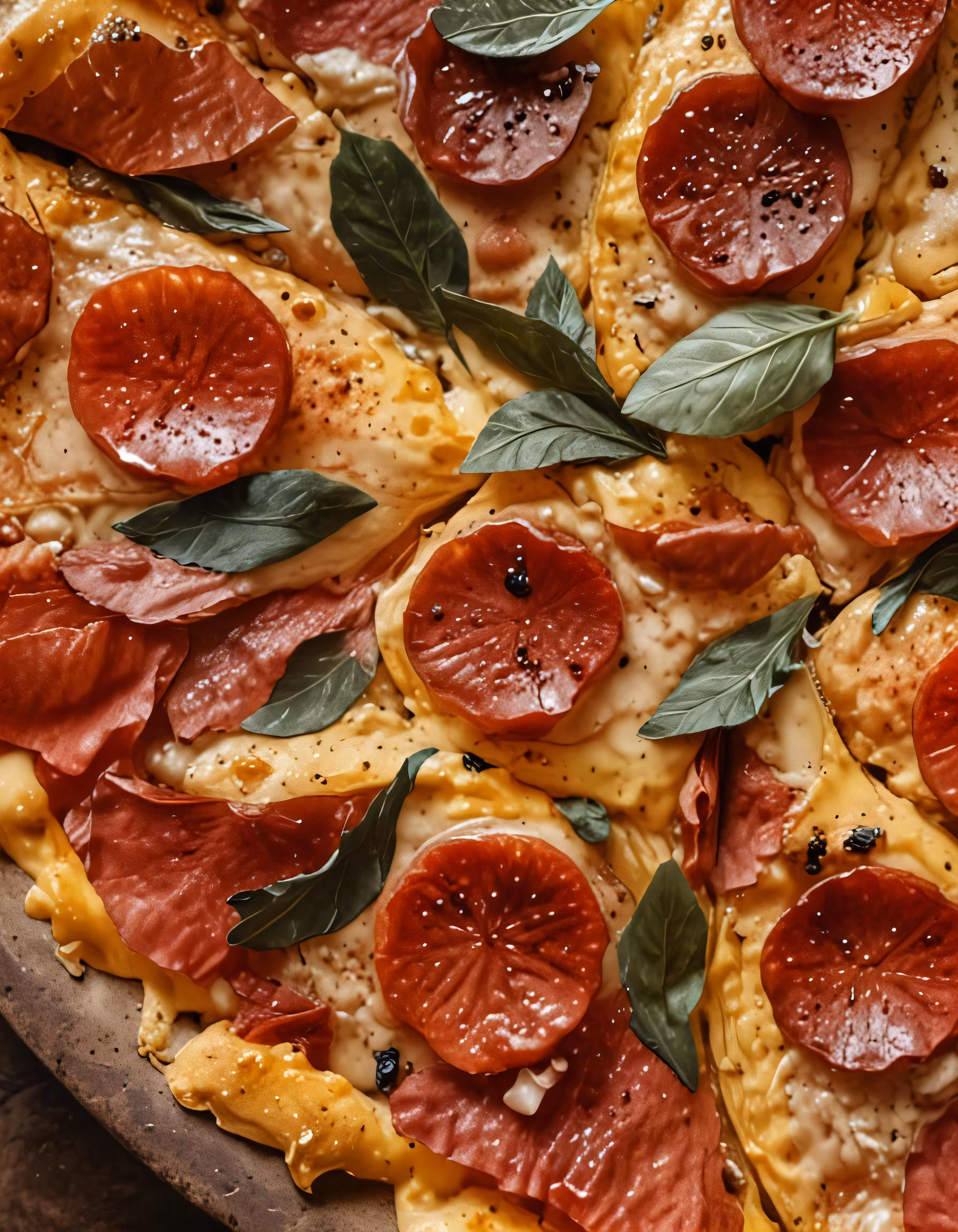 High resolution picture, free to use, the official logo for the 50 /a close up image of a pizza topped with pepperoni and cheese