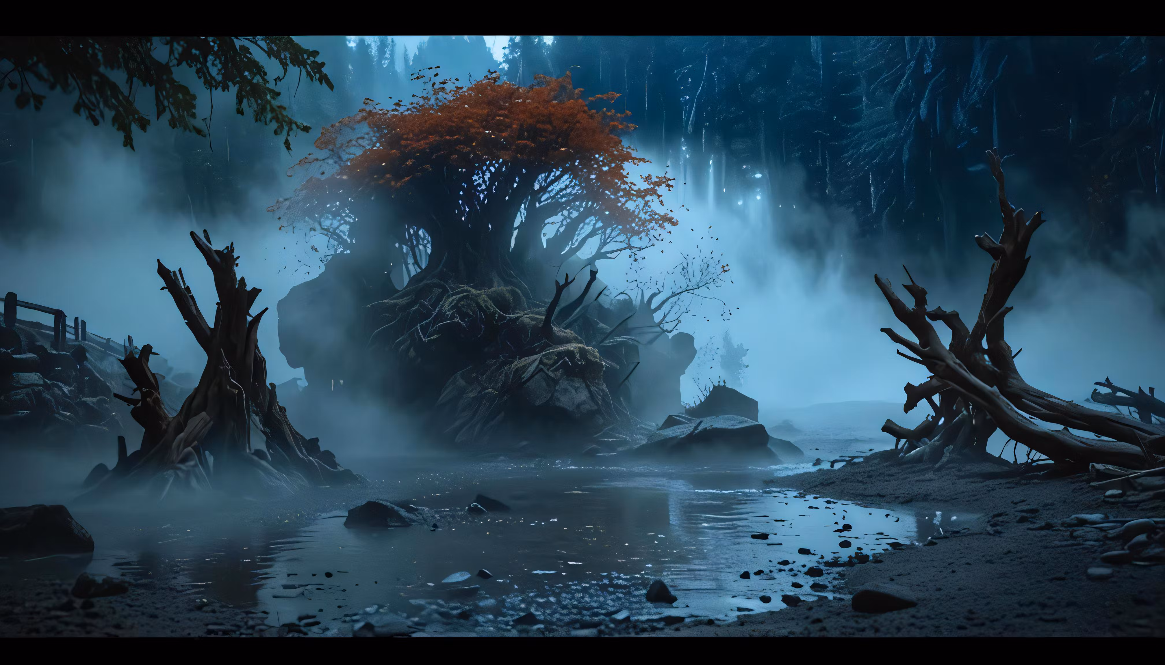 High resolution picture, free to use, the official logo for the 50 /a computer image of an unusual, tree   like house in the middle of the woods