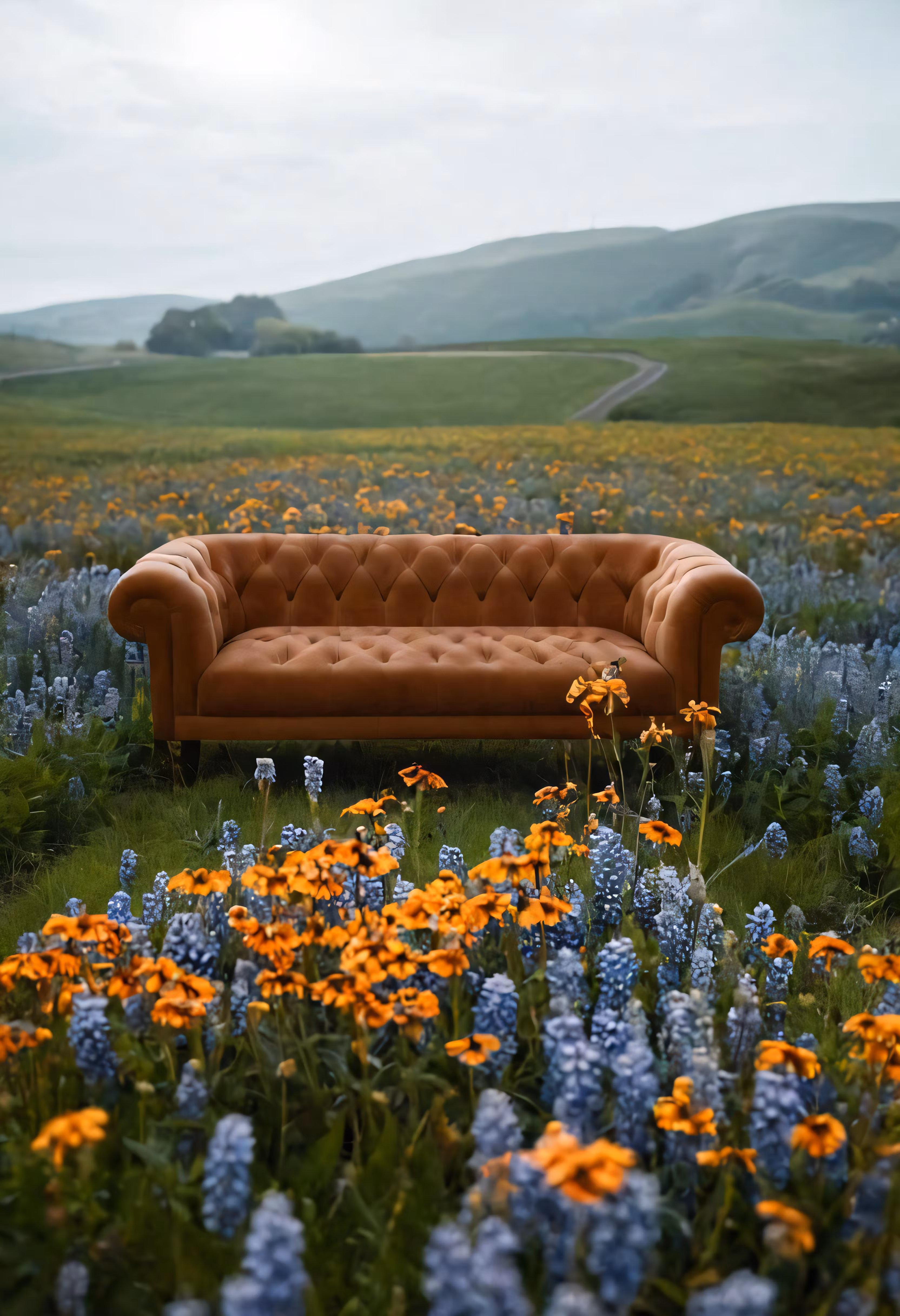 High resolution picture, free to use, the official logo for the 50 /a couch in a field with flowers in bloom