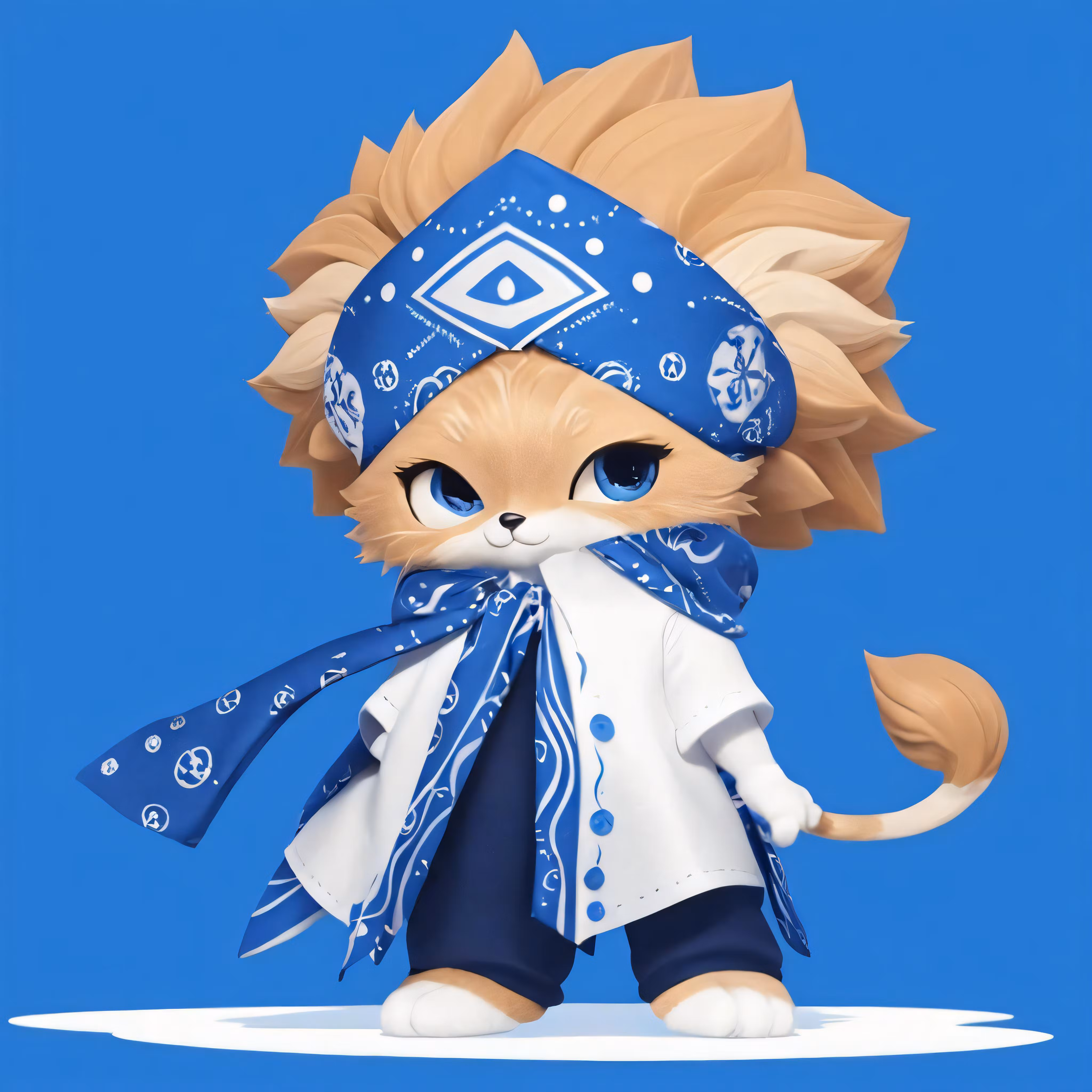 High resolution picture, free to use, the official logo for the 50 /a cute cartoon cat with blue bandannas