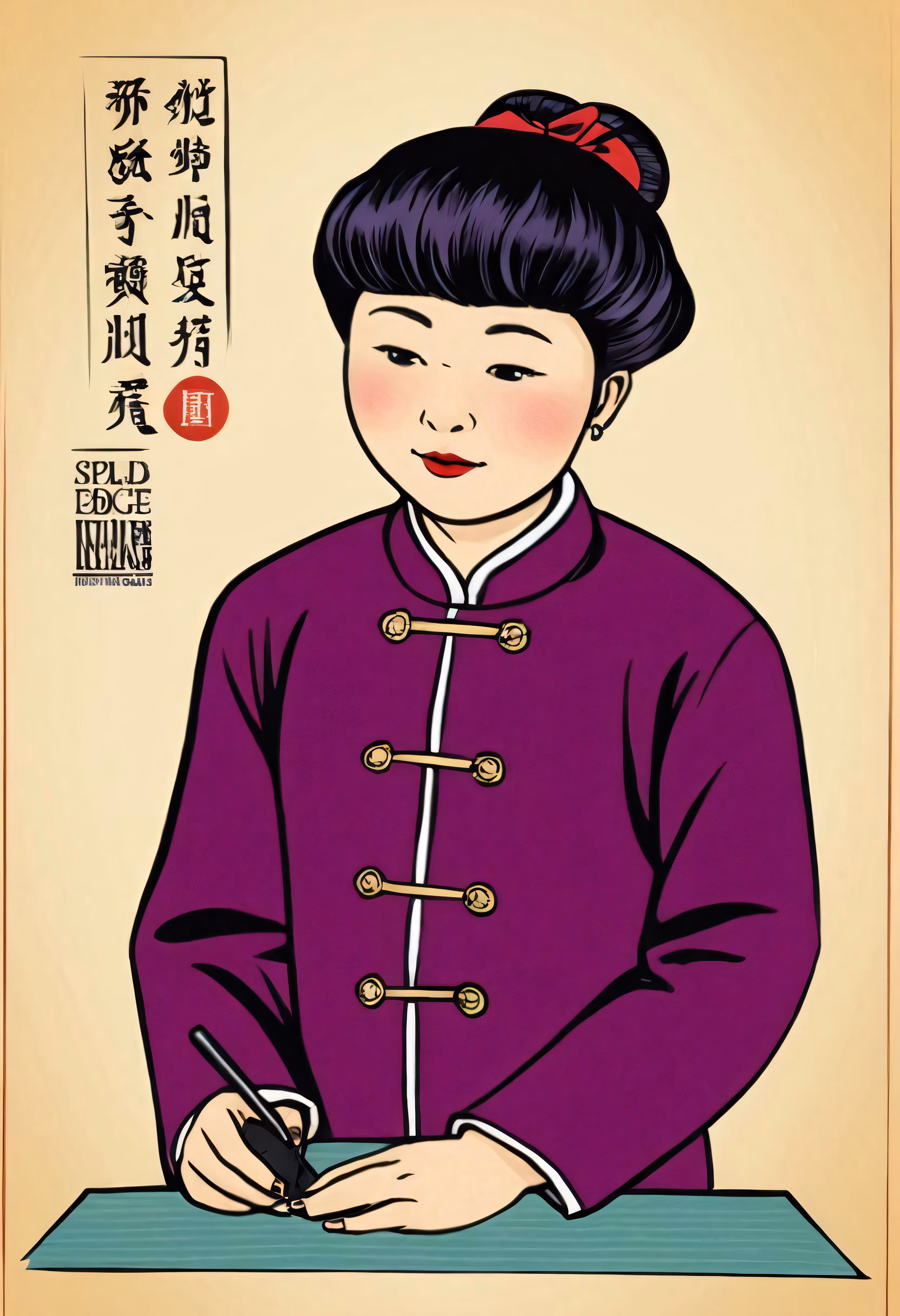 High resolution picture, free to use, the official logo for the 50 /a drawing of a chinese girl with her finger in her pocket