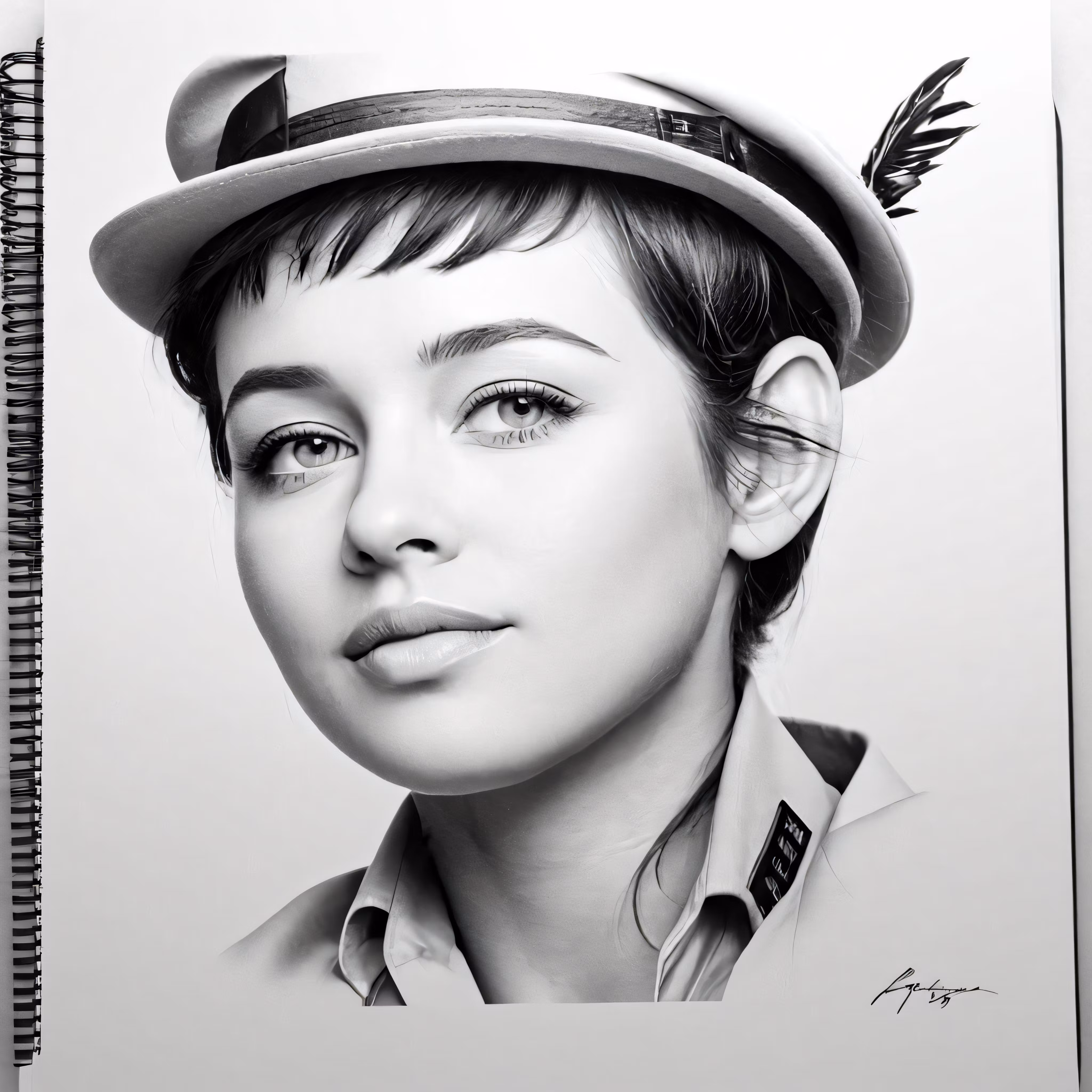 High resolution picture, free to use, the official logo for the 50 /a drawing of a young woman with a cap on