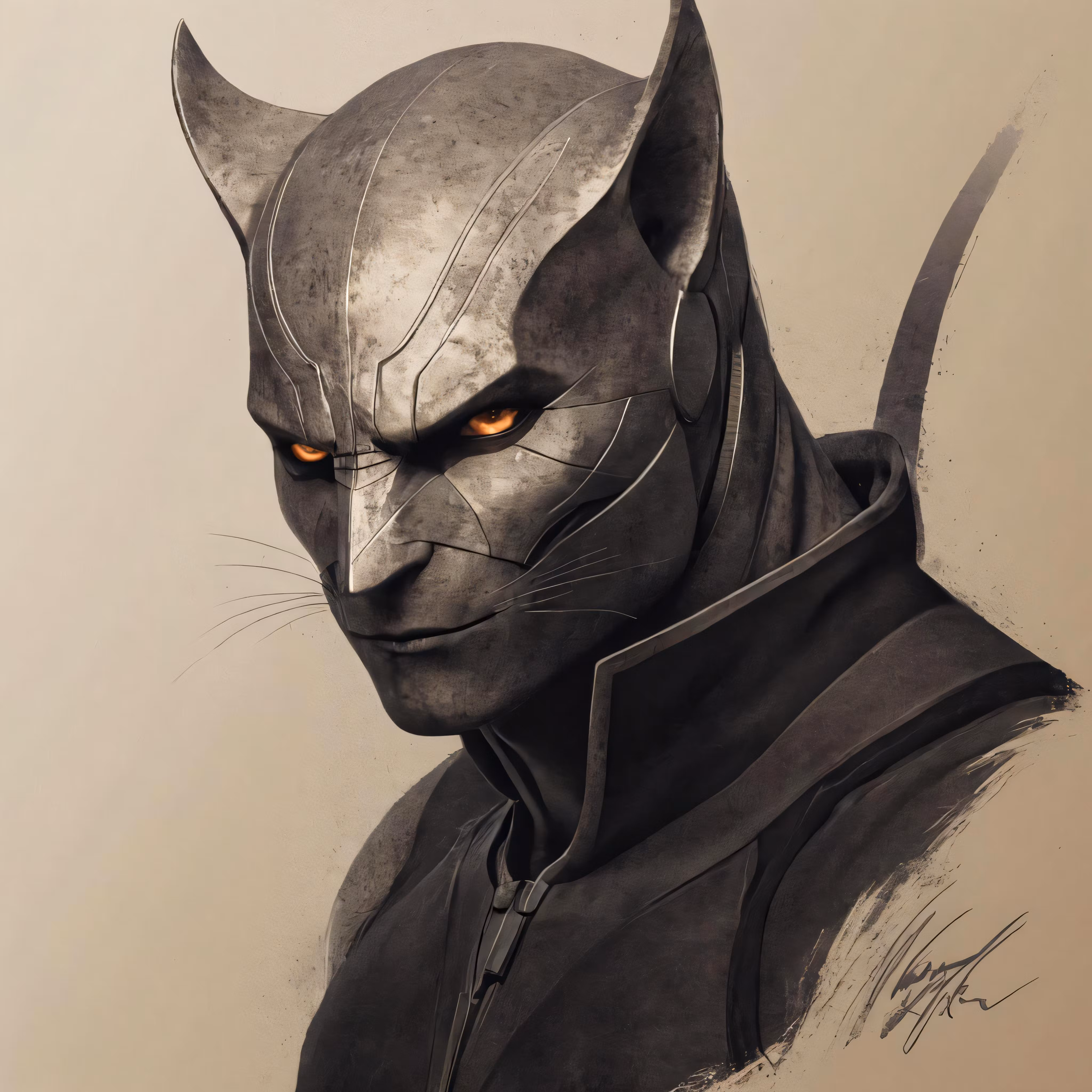 High resolution picture, free to use, the official logo for the 50 /a drawing of an evil warrior wearing a black cat costume