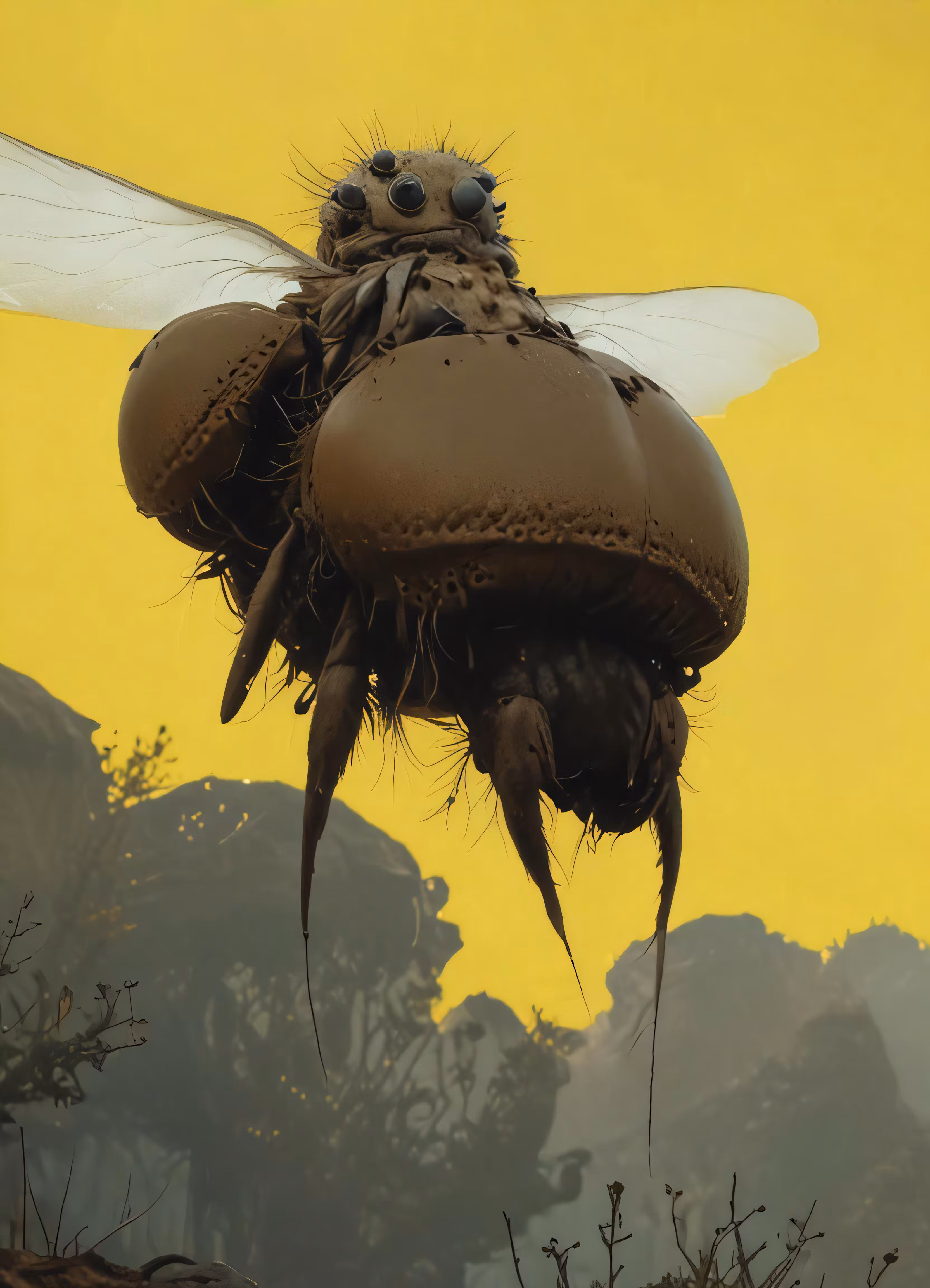 High resolution picture, free to use, the official logo for the 50 /a giant insect sitting on top of a yellow and green wall