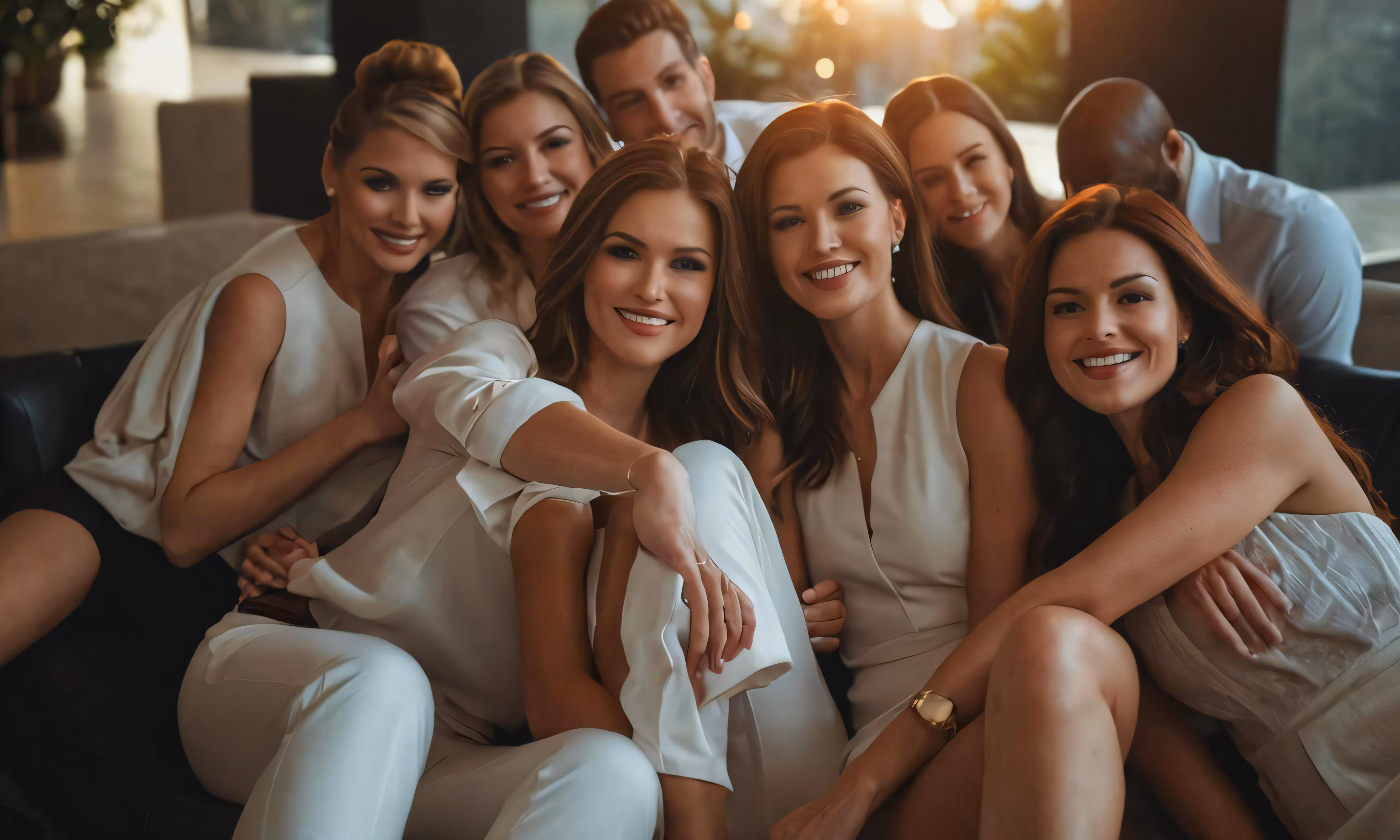 High resolution picture, free to use, the official logo for the 50 /a group of women in dresses posing for a picture