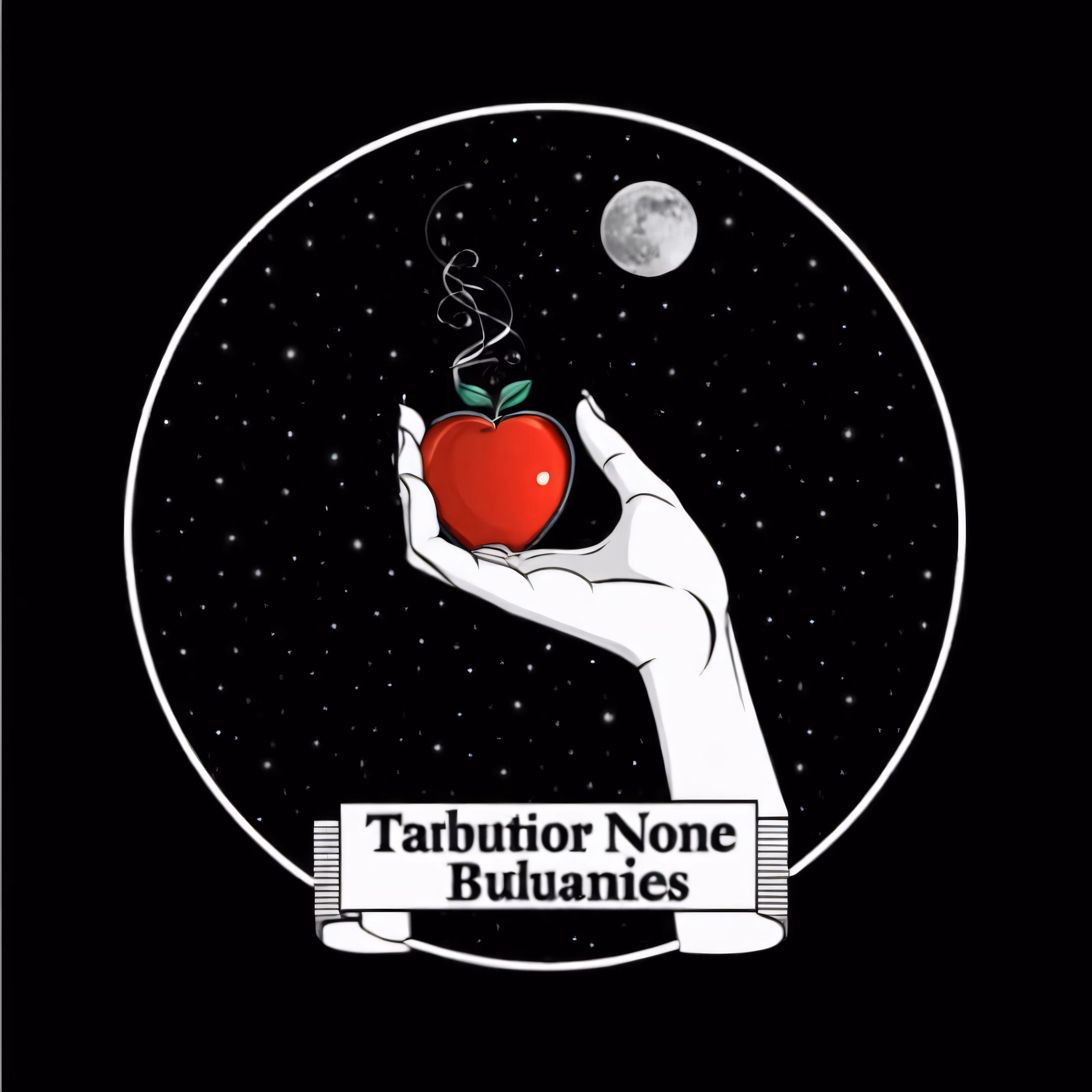 High resolution picture, free to use, the official logo for the 50 /a hand holding a red apple with the words, tattoo noir blances on it
