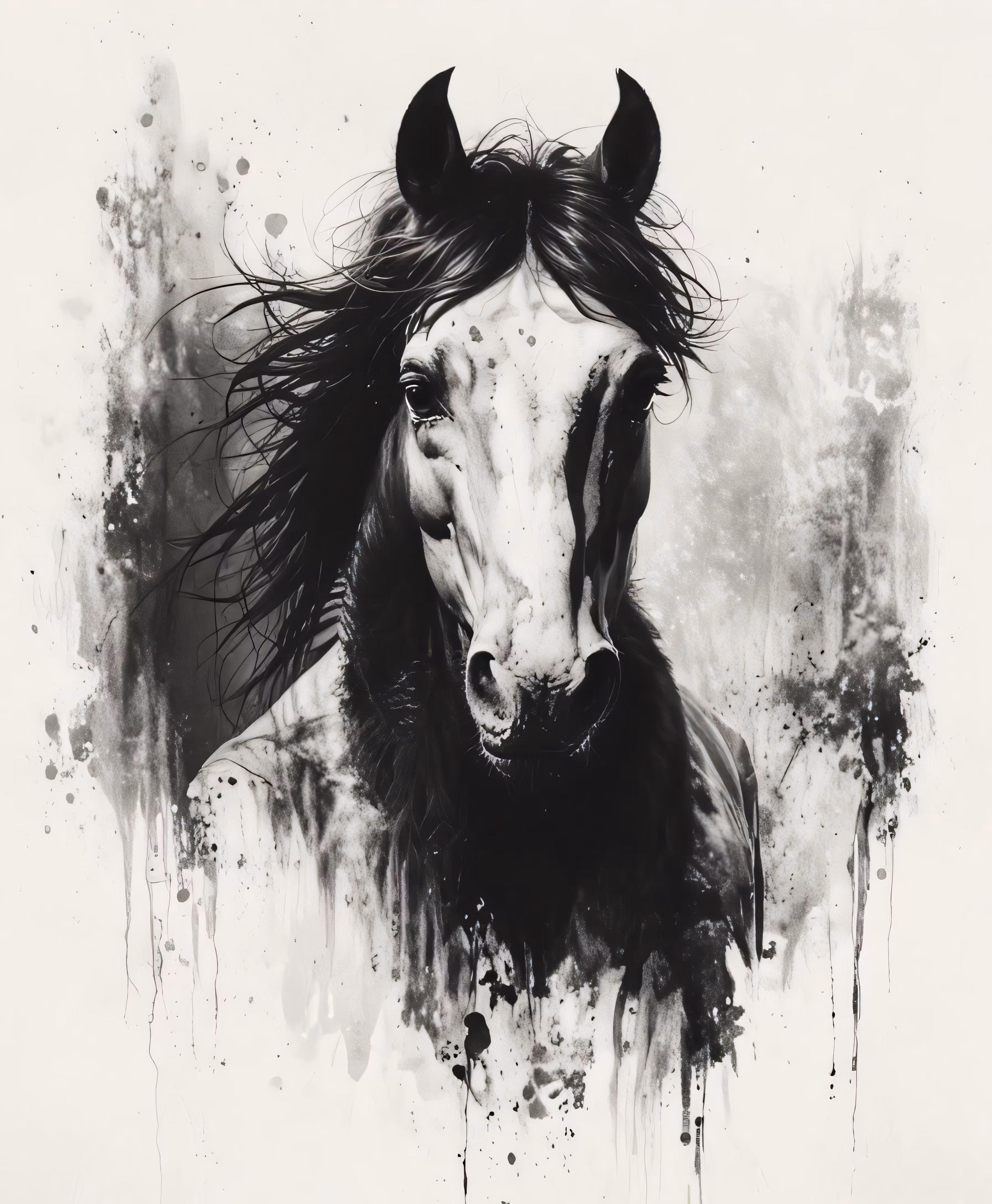 High resolution picture, free to use, the official logo for the 50 /a horse with long, straight hair and black markings on it