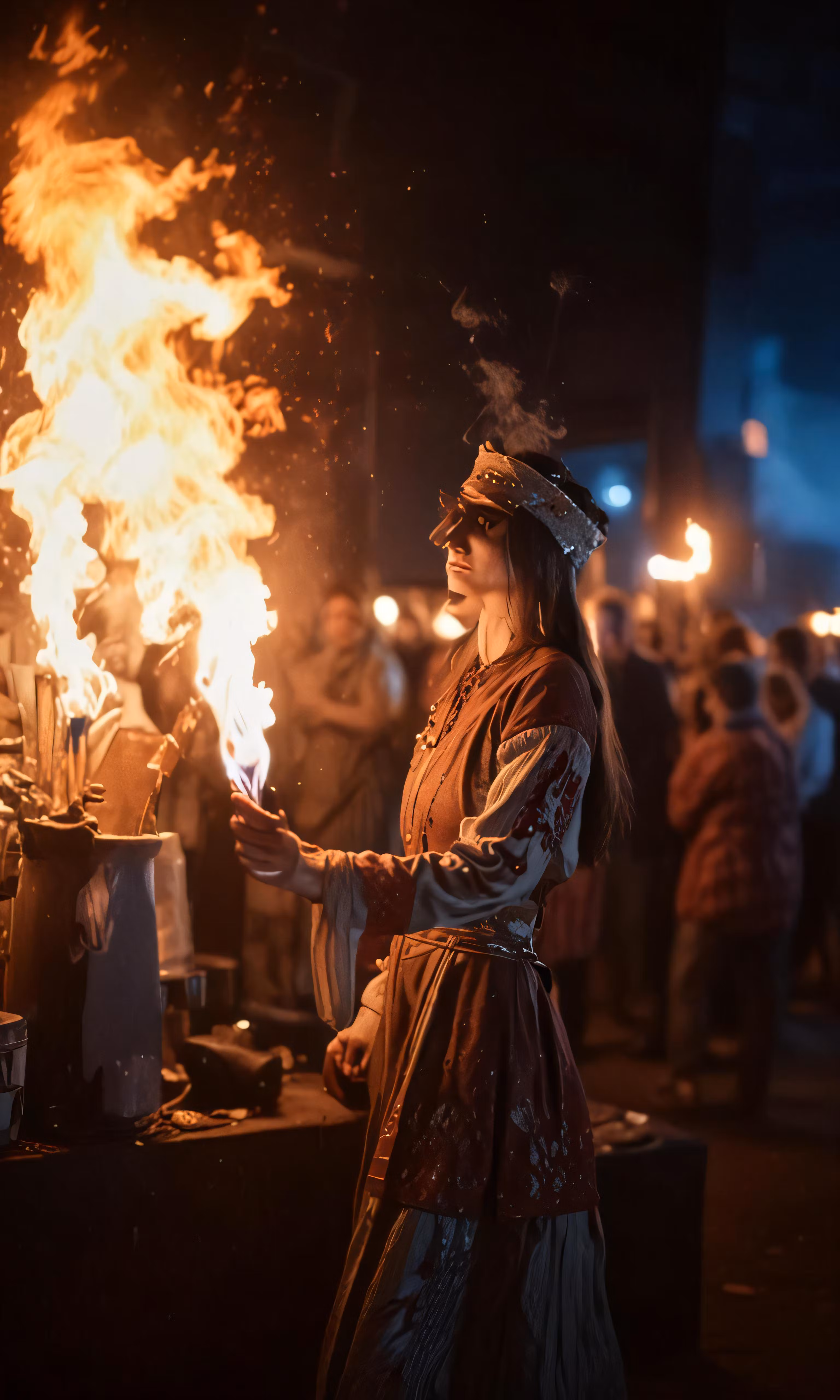 High resolution picture, free to use, the official logo for the 50 /a lady that is standing in the dark holding something