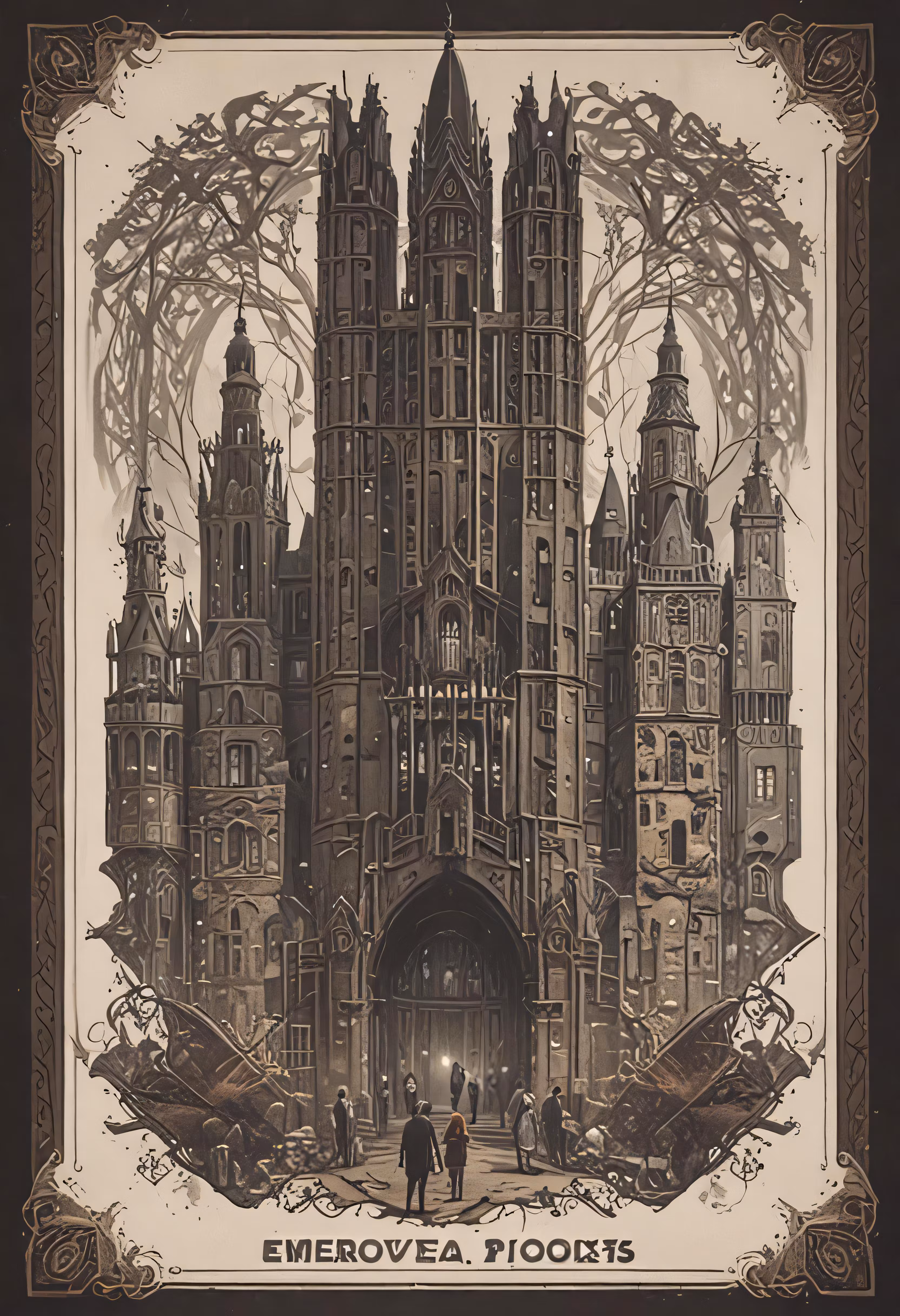 High resolution picture, free to use, the official logo for the 50 /a large poster with two people walking in front of an ornate church