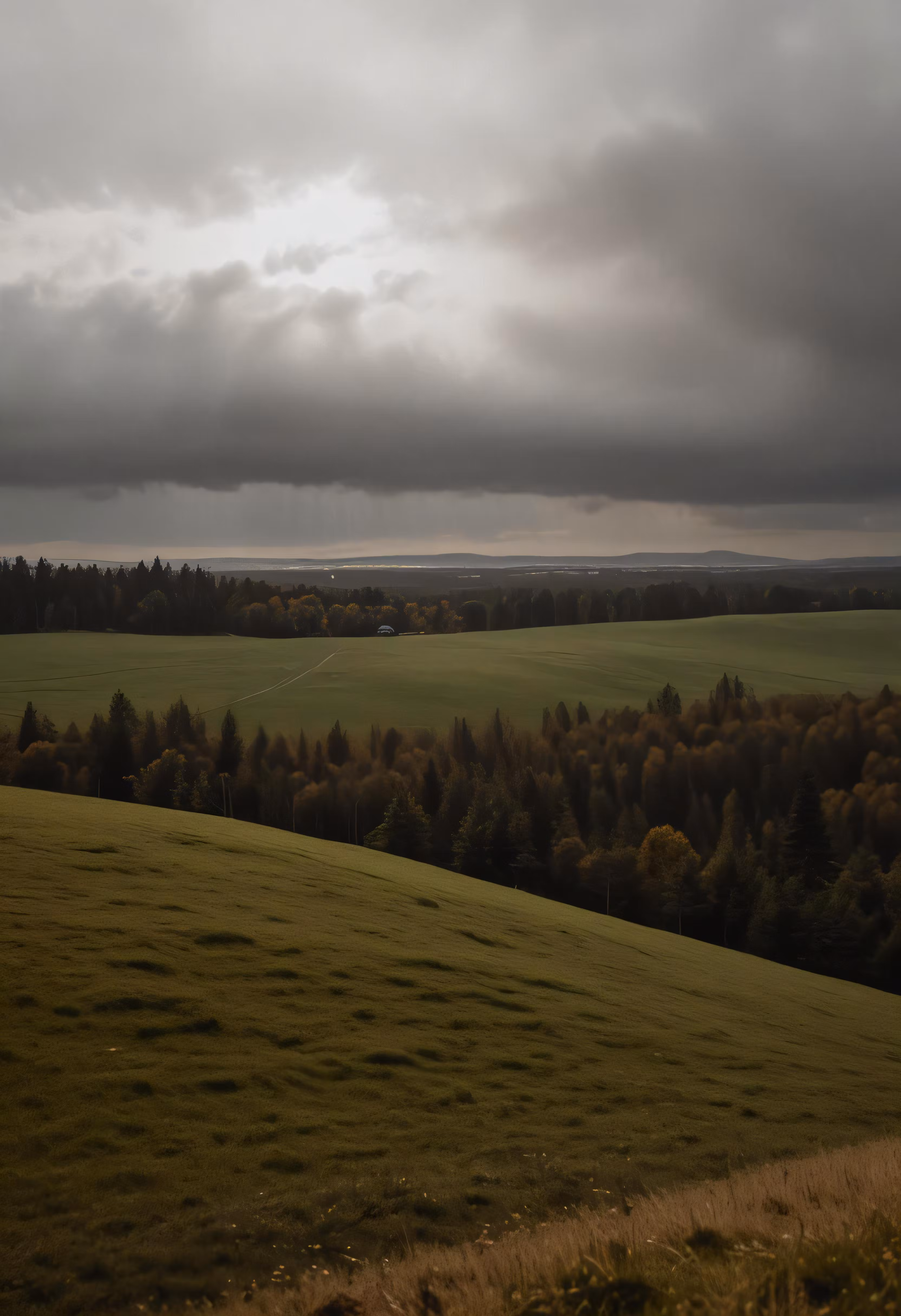 High resolution picture, free to use, the official logo for the 50 /a lush green hillside with an overcast sky