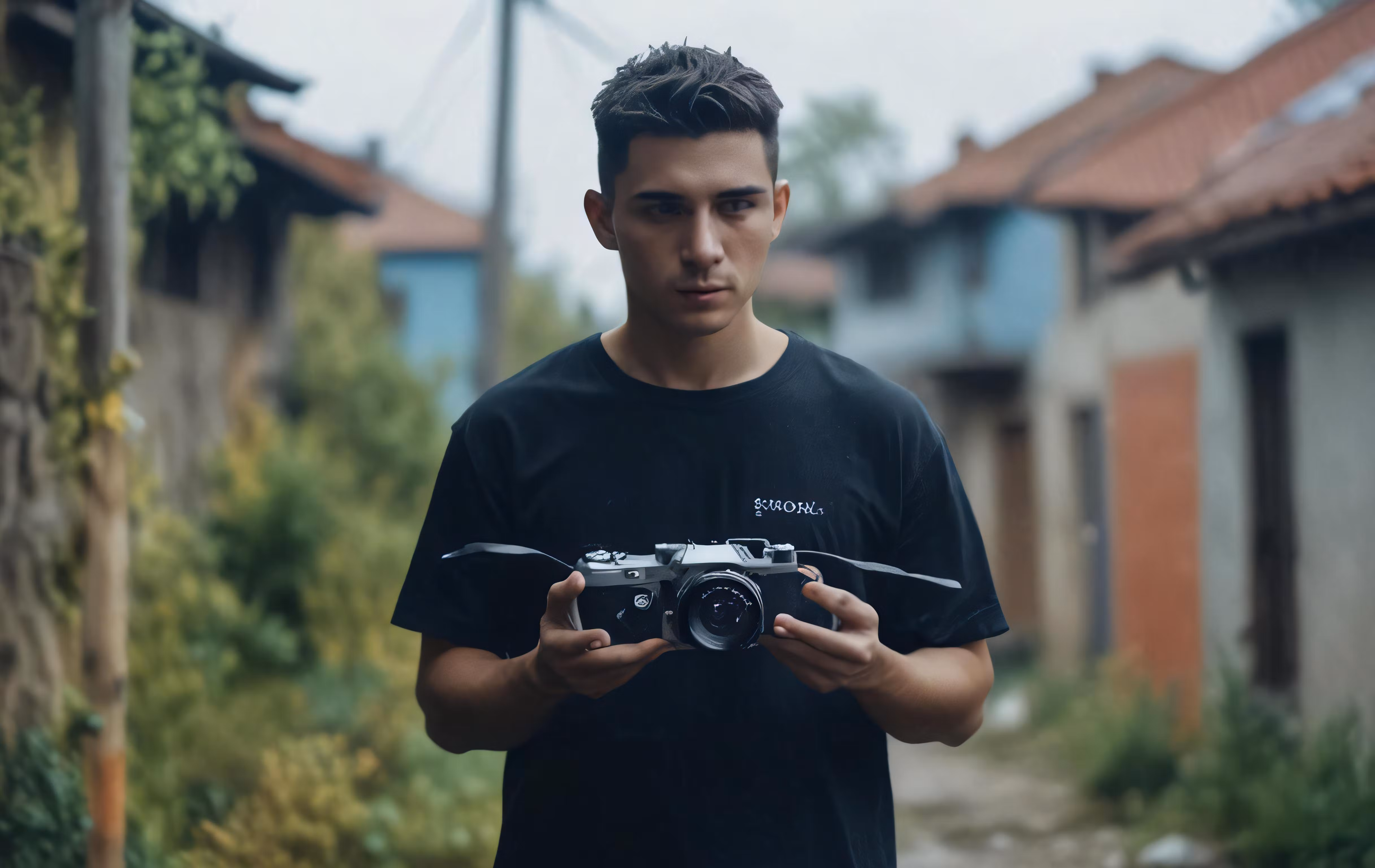 High resolution picture, free to use, the official logo for the 50 /a man holds a camera in his hands