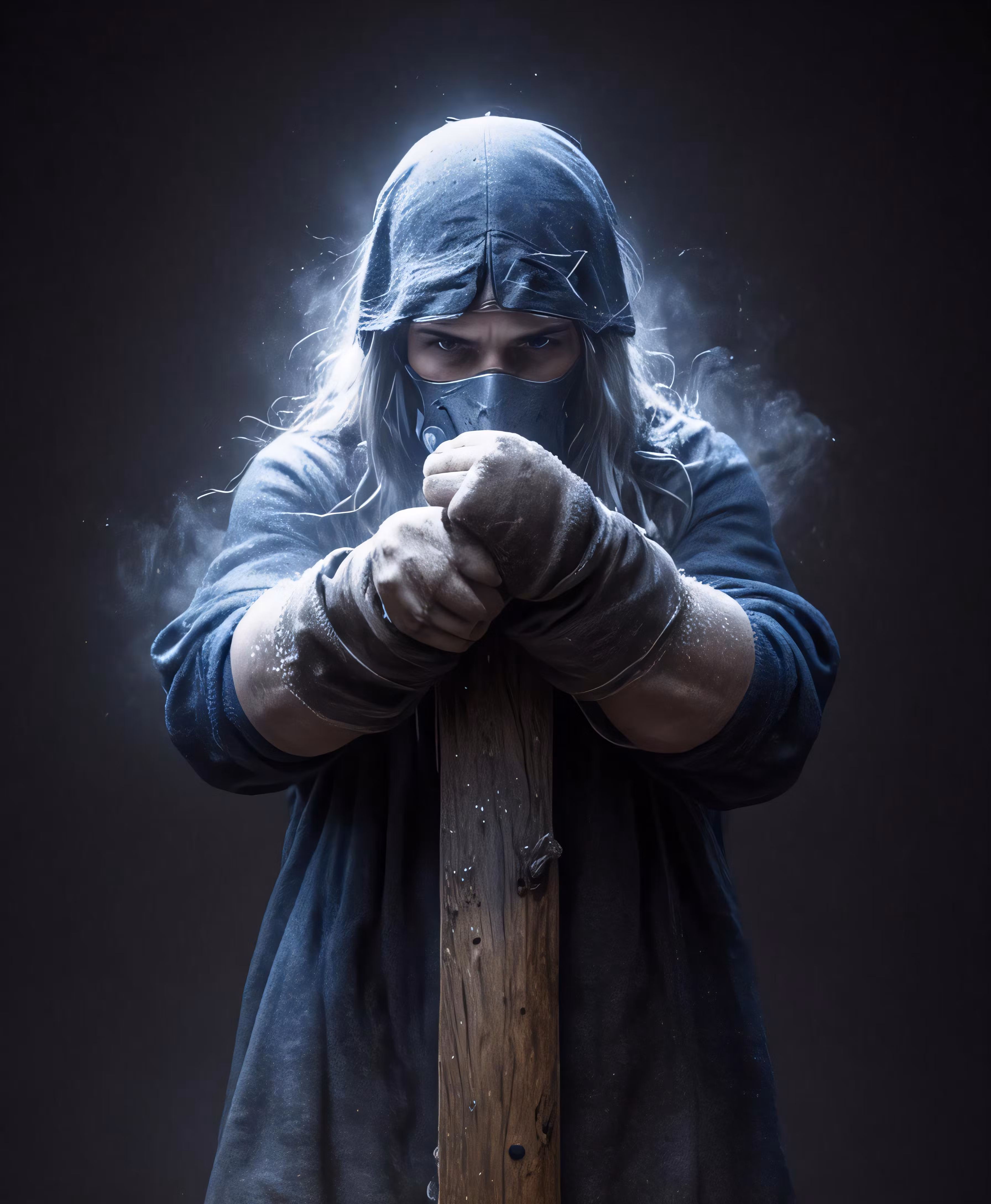 High resolution picture, free to use, the official logo for the 50 /a man in hoody holding a stick with smoke behind his face