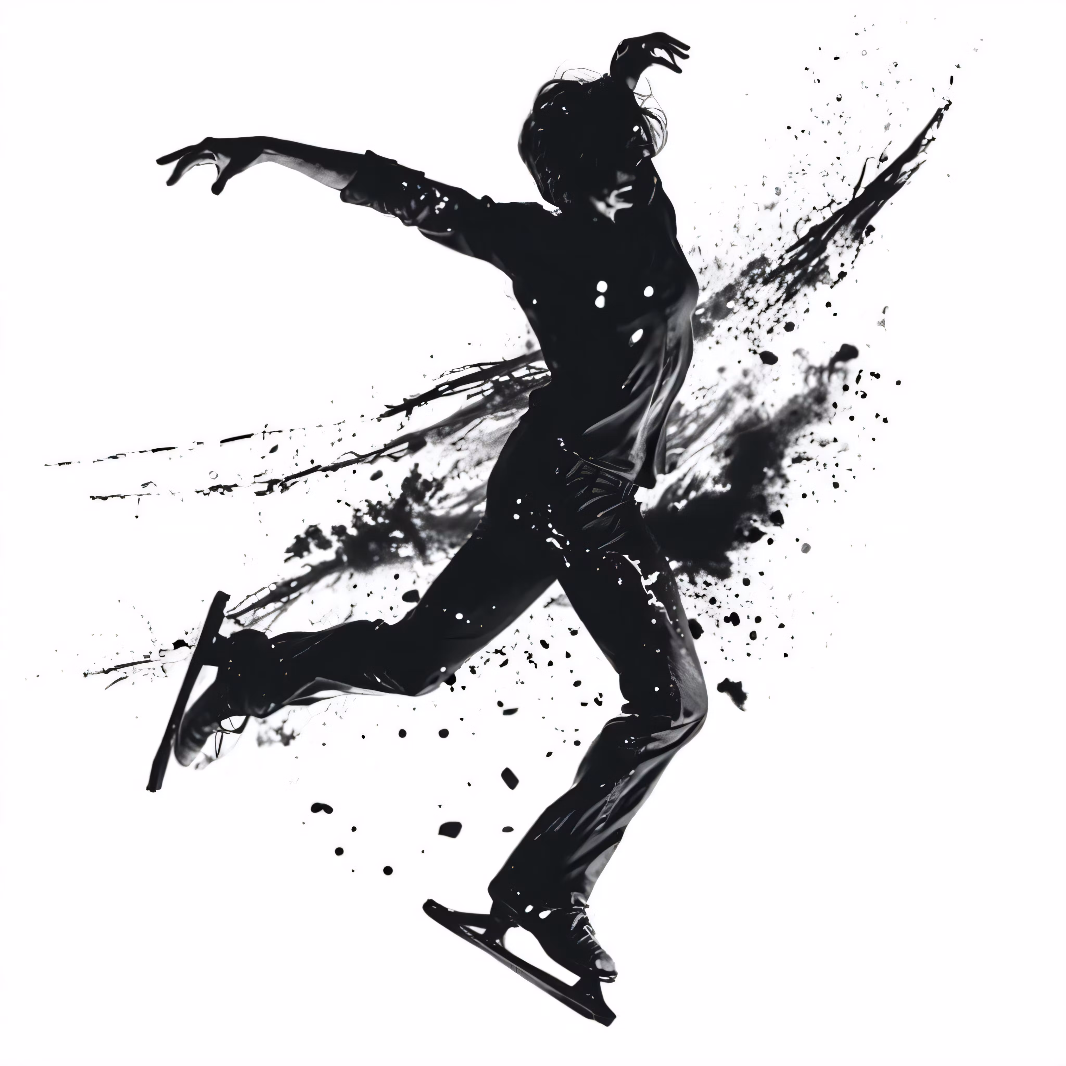 High resolution picture, free to use, the official logo for the 50 /a man is on a snowboard while splatters are coming out of his jacket
