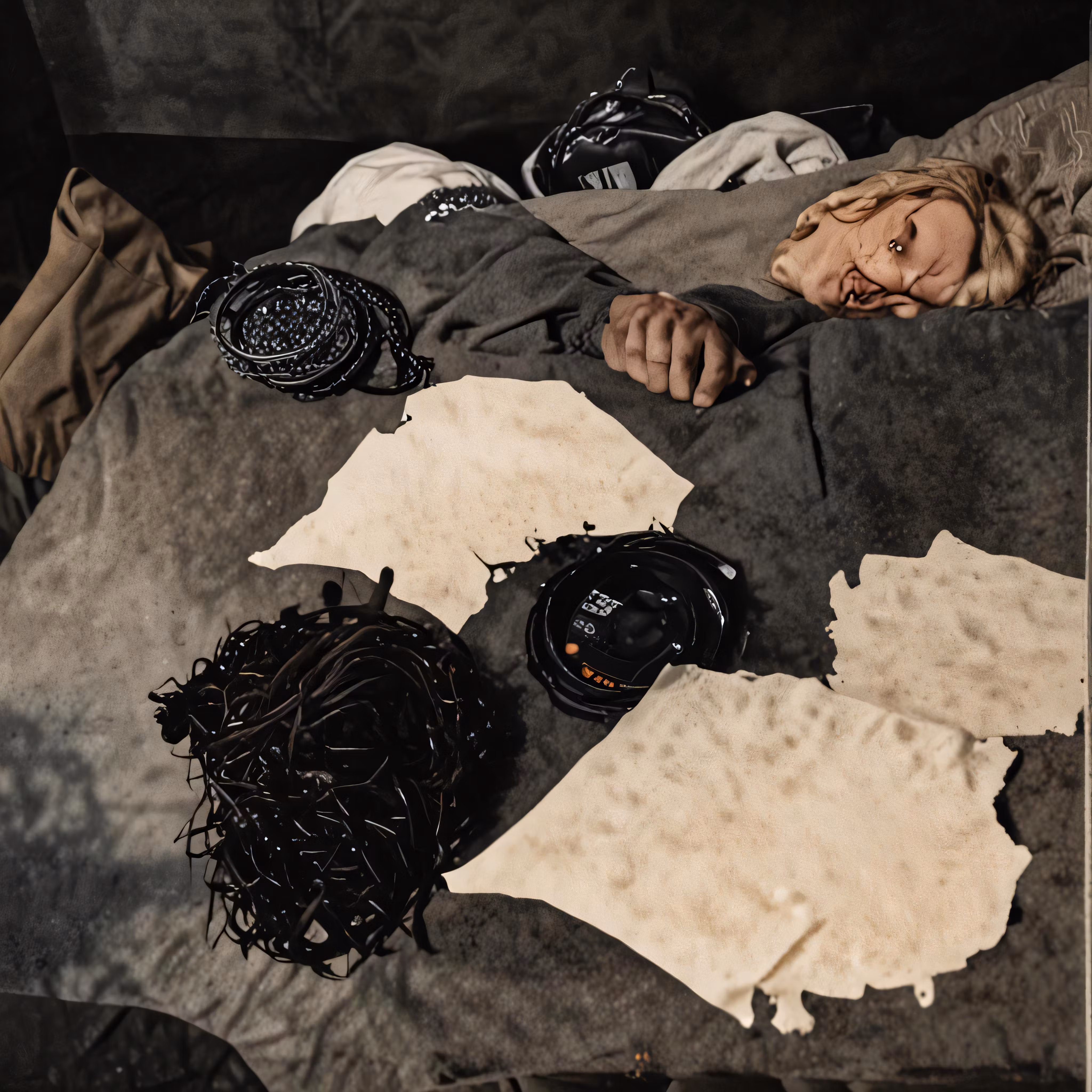 High resolution picture, free to use, the official logo for the 50 /a man laying in bed next to other items
