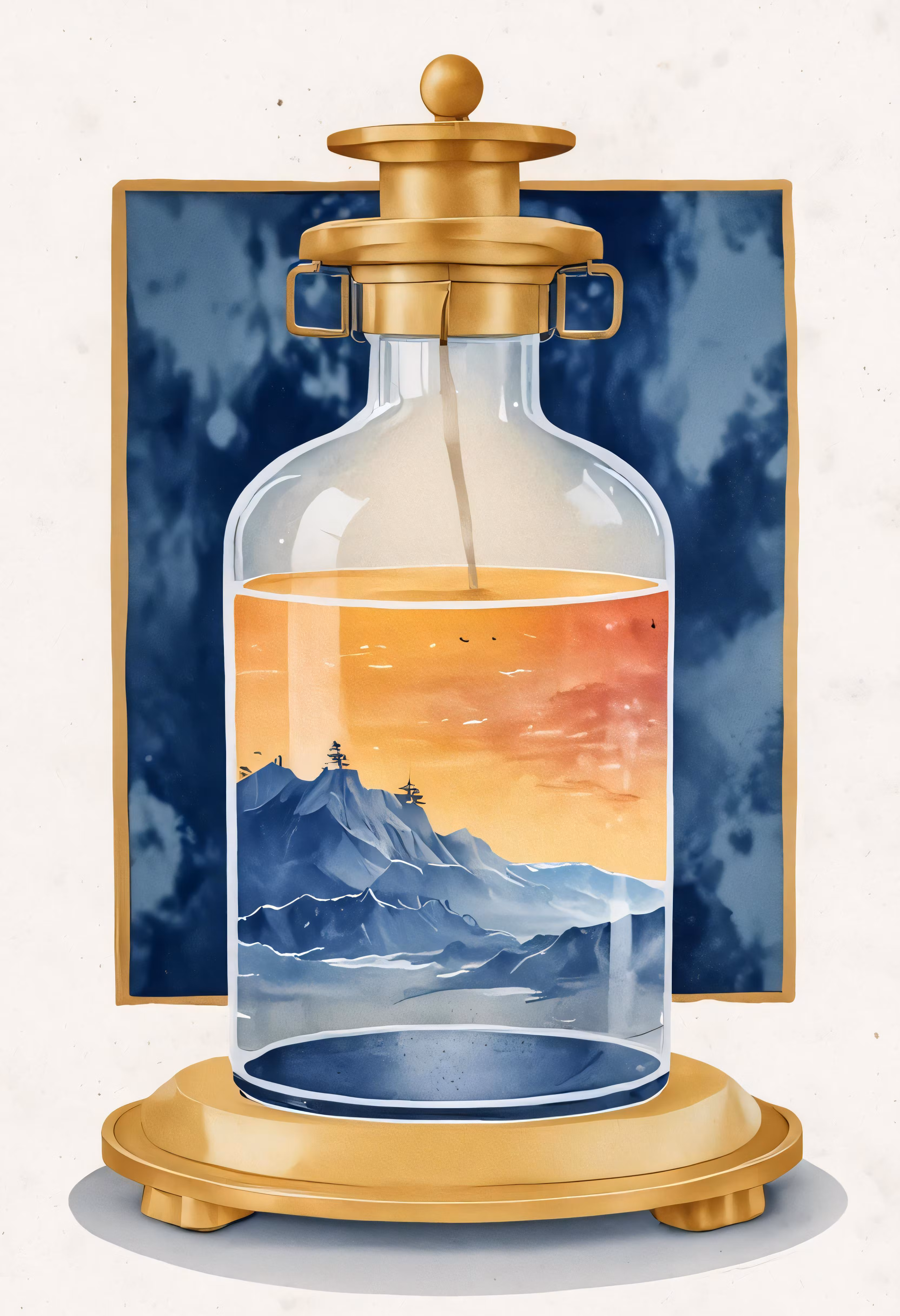 High resolution picture, free to use, the official logo for the 50 /a painting of a glass jar with a gold metal cap and liquid is sprinkled with clear liquid