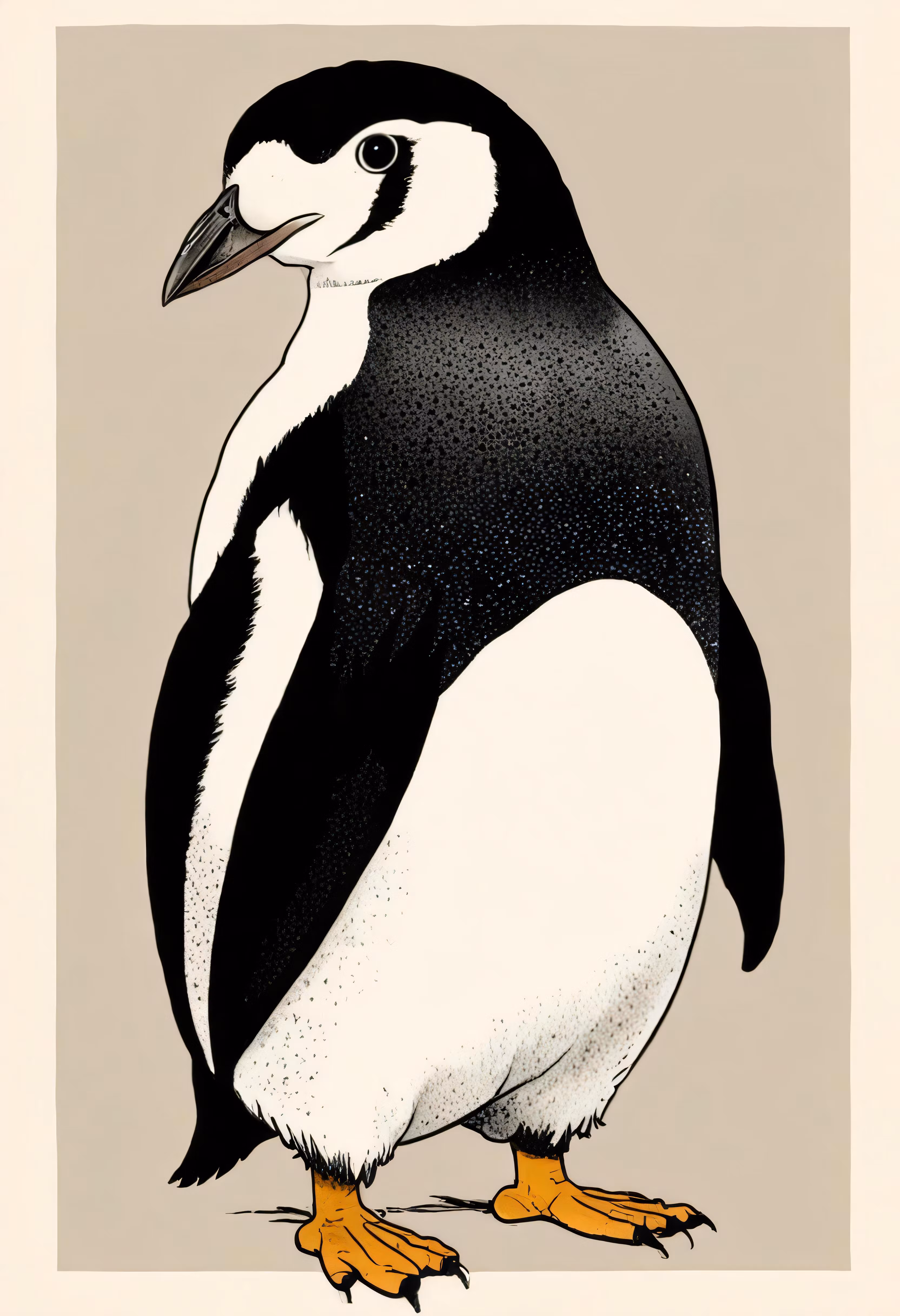 High resolution picture, free to use, the official logo for the 50 /a penguin in a line with one leg crossed