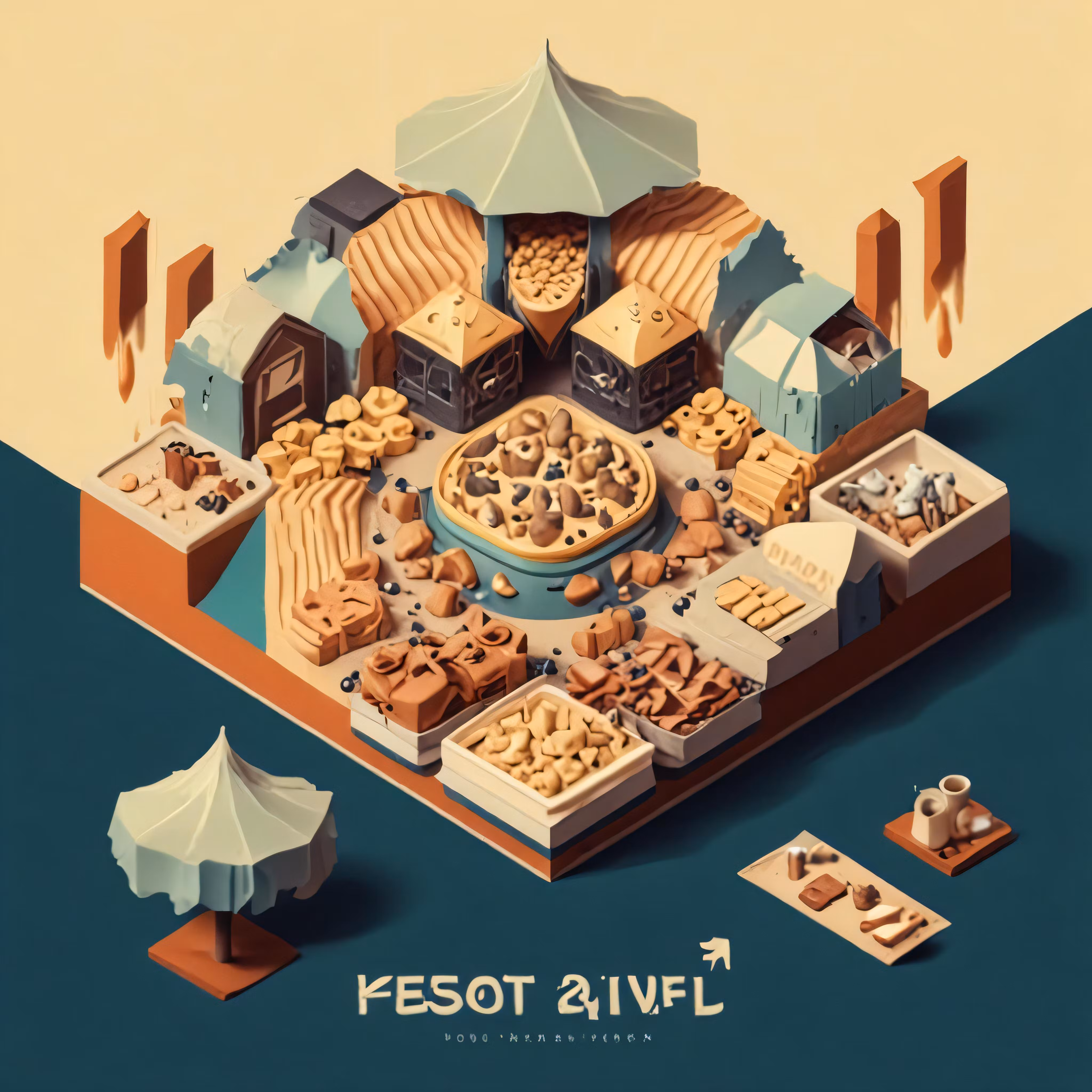 High resolution picture, free to use, the official logo for the 50 /a poster depicting a food stand made up of different items
