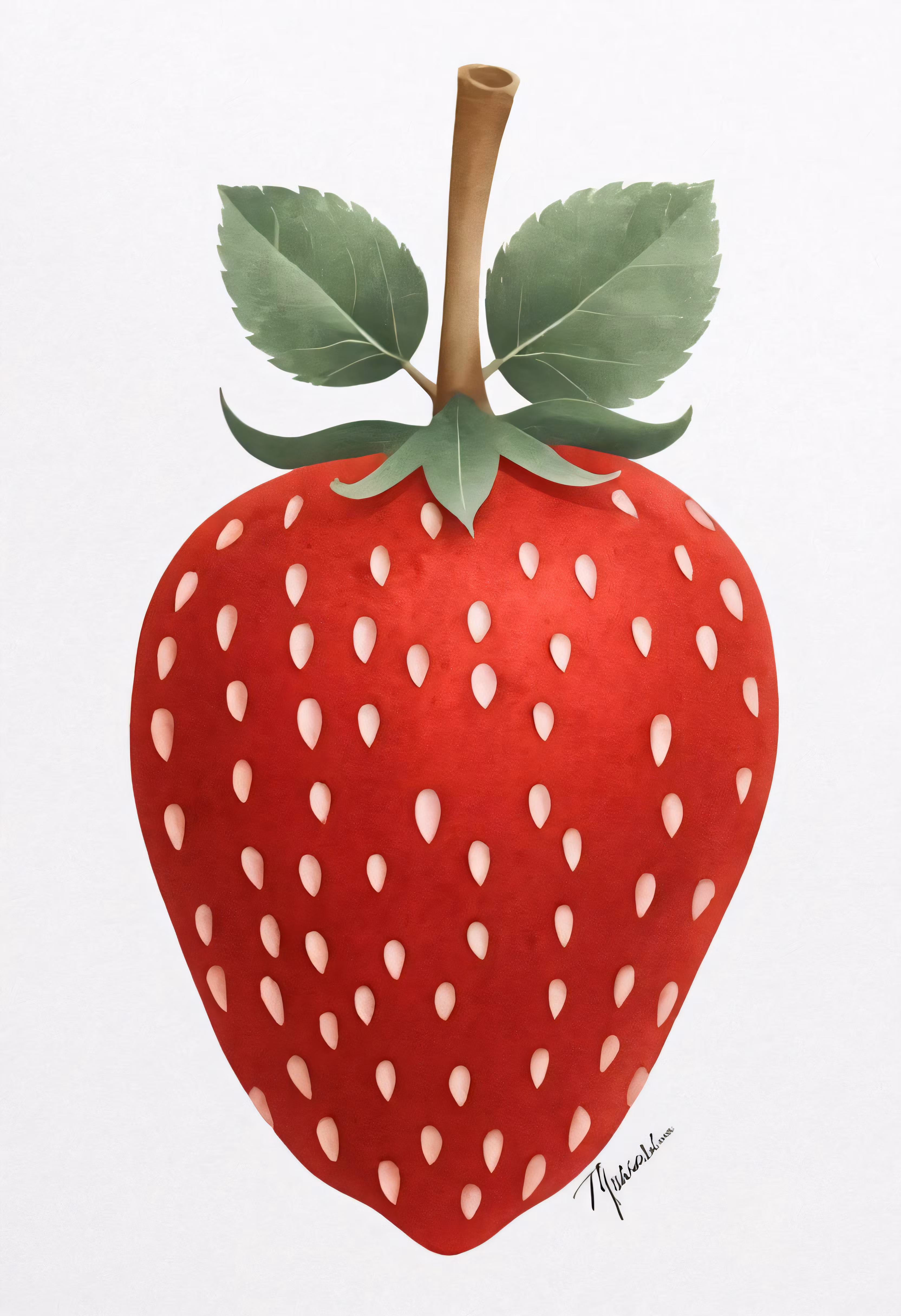 High resolution picture, free to use, the official logo for the 50 /a red strawberry with a brown stem and green leaf