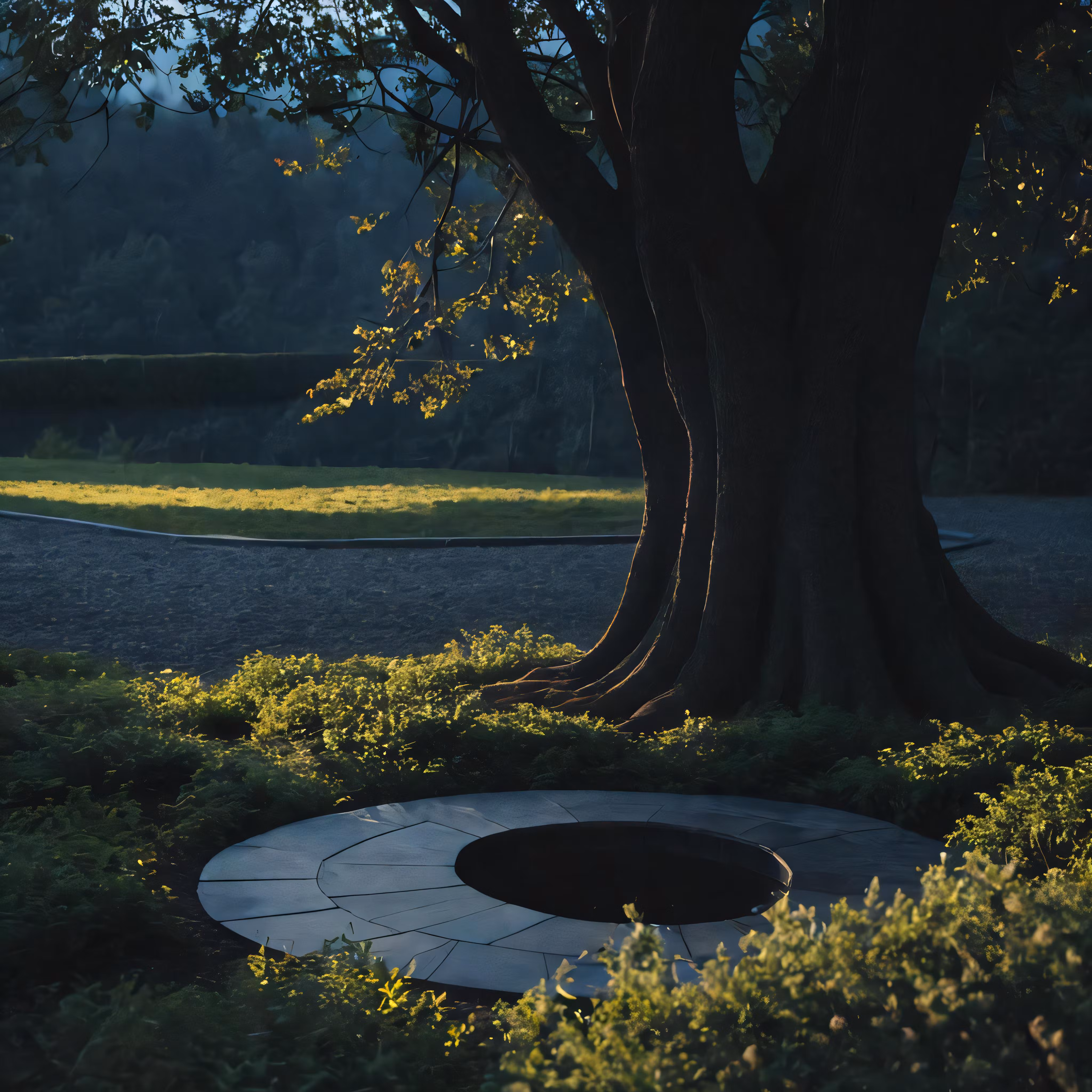 High resolution picture, free to use, the official logo for the 50 /a small circular hole between two trees is shown